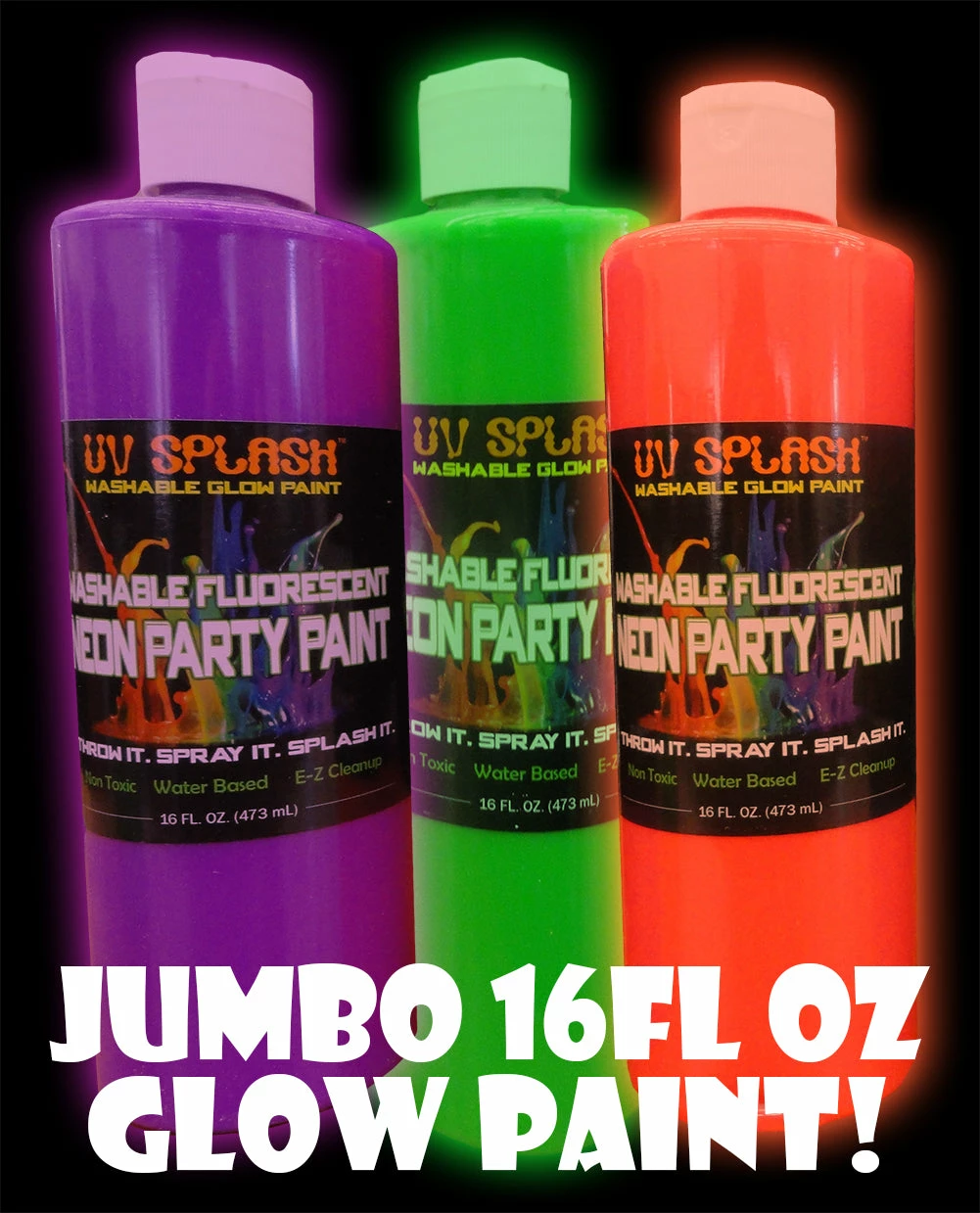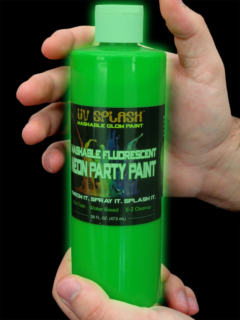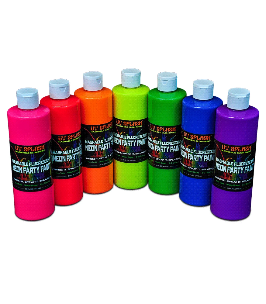 Fluorescent blacklight reactive UV Splash™ Washable Neon Party Paint glows brightly under blacklight, which makes it great for night clubs, dance parties, and raves.