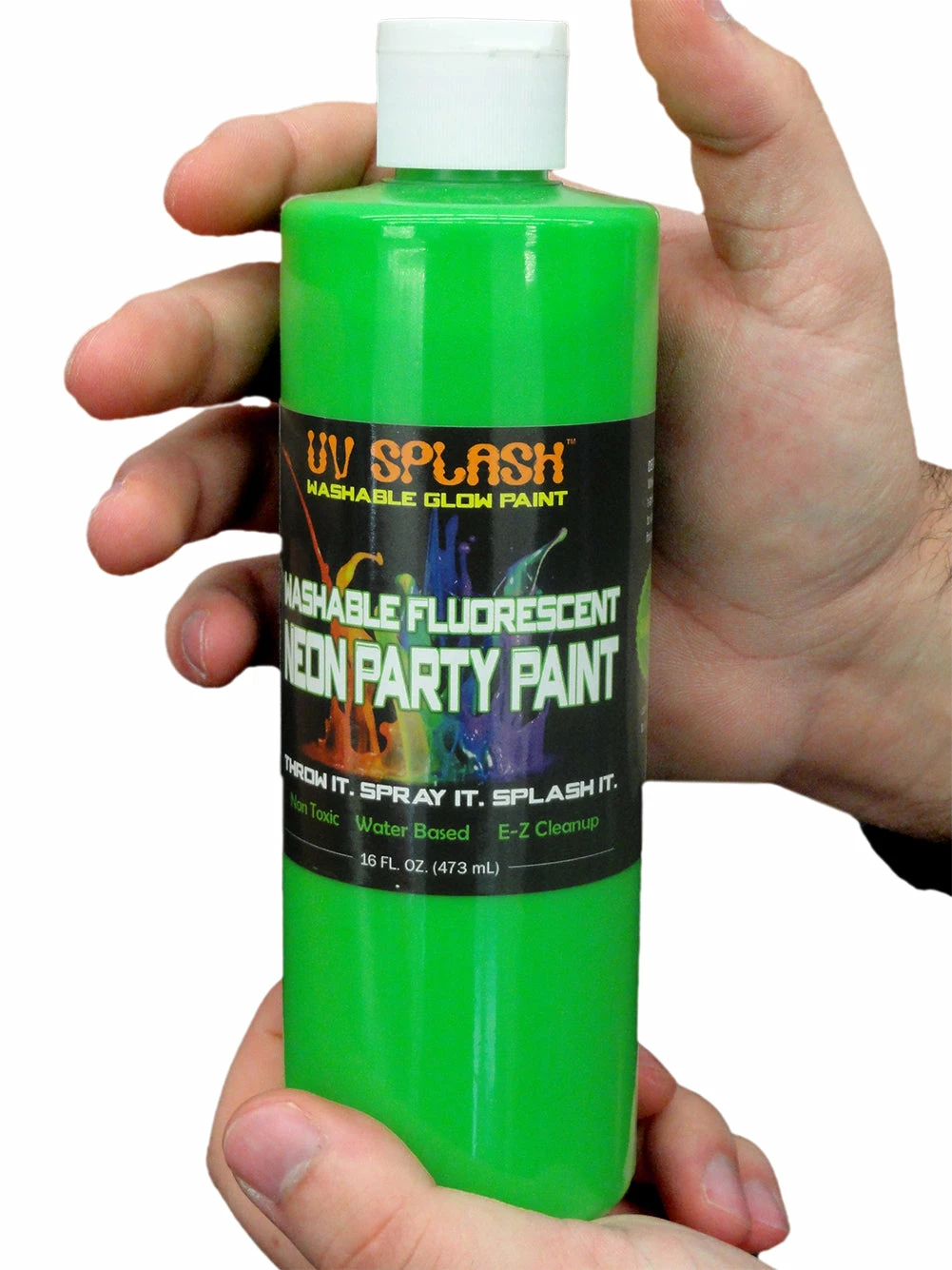 It’s safe, nontoxic, and most of all FUN for everyone! This neon paint is SUPER black light sensitive and UV Splash will fluoresce under any blacklight.