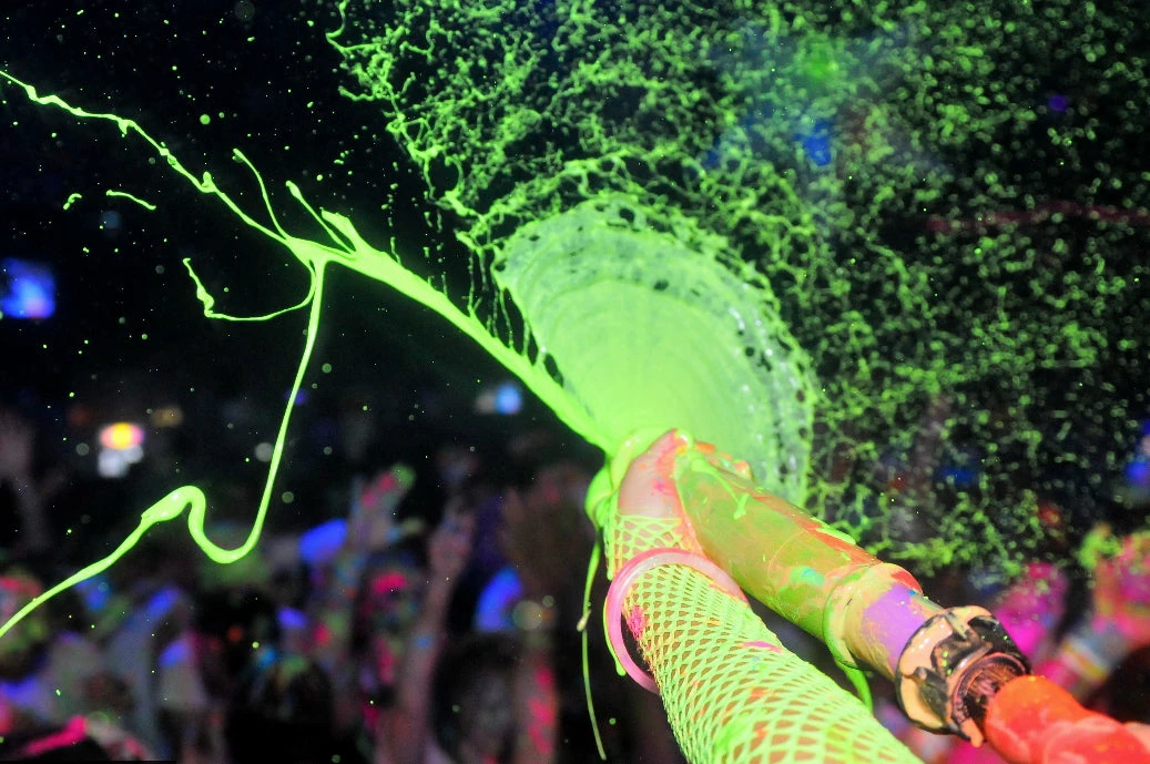 Our Washable Neon Rave Paint is excellent for events where crowd participation is a must. This very washable non-toxic Safe and Bright UV Paint will keep everyone involved as each bottle comes with a white flip top cap with small orifice to shoot the paint out of.