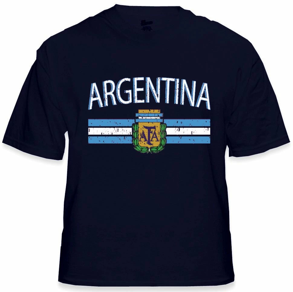 Argentina Vintage Flag International Mens T-Shirt. Show pride for your favorite Nation! Our collection of deluxe vintage international print t-shirts are the perfect way to support your home country. Each shirt features premium vintage style designs made to look distressed for that soft “Favorite Old T-shirt” look from day one. These shirts are perfect whether you are rooting for your favorite soccer nation or just showing your love for a special country. Bold athletic style writing spells out each country’s name curved above the country’s national shield; a classic design that is sure to display your patriotism! Each shirt is printed to order on a deluxe Cotton tee shirt in your choice of color.