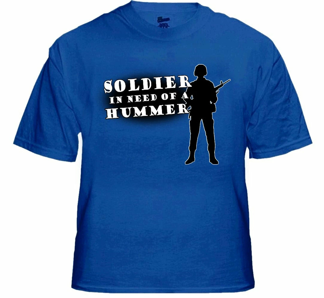 Army & Marine Shirts – Soldier In Need of a Hummer T-Shirt. The largest selection of funny and offensive novelty t-shirts are here! Our novelty t-shirts are funny and to the point and designed to look great and get the point across. Wear our selection of humorous joke shirts to a house party, school, the club or even just around the house. Each design has been hand selected by our team of humorist so you are sure to get all the laughs at your next event! Each design is printed on a comfy deluxe 100% cotton t-shirt in your choice of color.