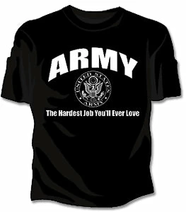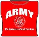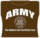 Army The Hardest Job Girls T-Shirt. Exclusively from Bewild.com, these new tee’s feature hard-core sayings that say it all. From “Lick Here For Full View” to “Skanky white-trailer trash”. How about a t-shirt that says “Dip me in Chocolate and throw me to the lesbians?” Our short sleeve “Army The Hardest Job You’ll Ever Love” t-shirts are made from a 100% fully machine washable cotton/poly blend for a cool and comfortable fit every time.
