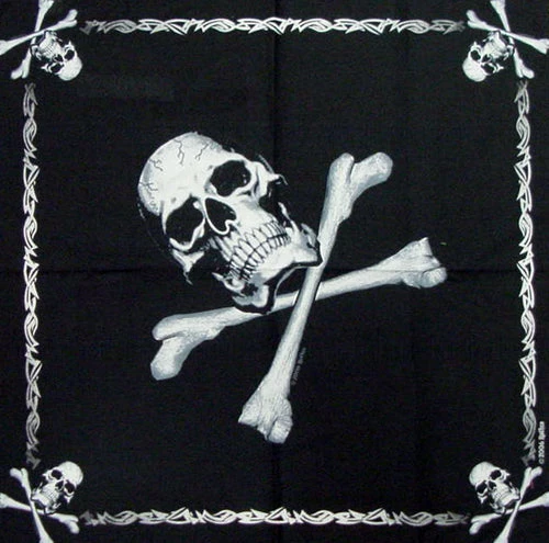 Bandanas – Skull And Crossbone Bandana. Bandanas are a very unique and versitile accessorie that can be worn as a wrap or head band, can be tied around your wrist as an accent peice or can be used on your dining room table as stylish dinner napkins. There are millions of uses for a bandanna, whether you are wearing it as an accent to your outfit or tying it around your dogs collar to give rover a cute touch you are sure to find tons of great ways to use your bandana. Here at bewild.com we offer a huge selection of premium quality bandanas is dozens of colors, styles, paterns and designs. Each 100% cotton bandana measures 22″ x 22″, the perfect size to tie around your head. Perfect for bad hair days!