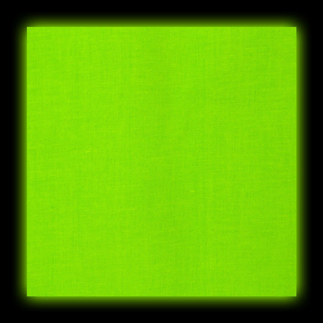 Neon Green Bandana (Glows Under Black Light). Bandanas are a very unique and versatile accessory that can be worn as a wrap or head band, can be tied around your wrist as an accent piece or can be used on your dining room table as stylish dinner napkins. There are millions of uses for a bandanna, whether you are wearing it as an accent to your outfit or tying it around your dogs collar to give rover a cute touch you are sure to find tons of great ways to use your bandana. Here at bewild we offer a huge selection of premium quality bandanas is dozens of colors, styles, patterns and designs. Each 100% cotton bandana measures 22″ x 22″, the perfect size to tie around your head. Perfect for bad hair days!