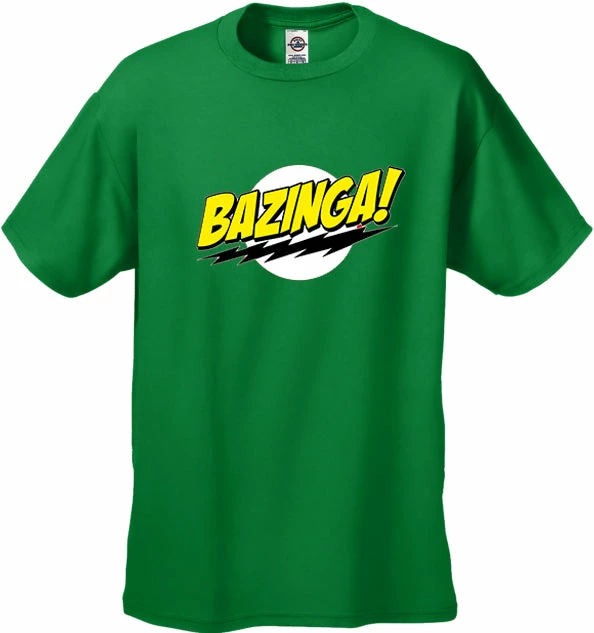 From Big Bang Theory Bazinga Kid’s T Shirt From Big Bang Theory. This Bazinga T-shirt features the Bazinga motto on the front of the t-shirt. As seen on the TV show Big Bang Theory worn by Sheldon.