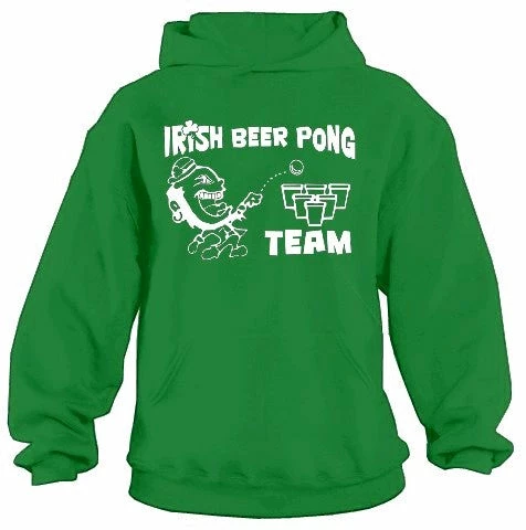 Irish Beer Pong Team Hoodie (White Print). No other nationality is renowned for their drinking abilities like the Irish. Being Irish is like having a license to Drink! Thats why when it come to beer pong the Irish can play all night and still see straight! Now you too can be apart of the legendary Irish Beer Pong Team. Just thrown on your Irish Beer Pong hoodie and you are ready to play just like the Irish Beer Pong Legends of yesteryears!