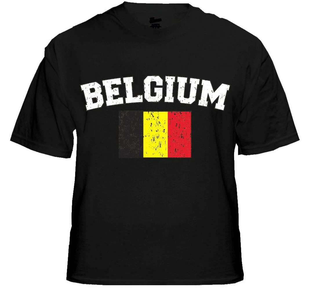 Belgium Vintage Flag International Mens T-Shirt. Show pride for your favorite Nation! Our collection of deluxe vintage international print t-shirts are the perfect way to support your home country. Each shirt features premium vintage style designs made to look distressed for that soft “Favorite Old T-shirt” look from day one. These shirts are perfect whether you are rooting for your favorite soccer nation or just showing your love for a special country. Bold athletic style writing spells out each country’s name curved above the country’s national shield; a classic design that is sure to display your patriotism! Each shirt is printed to order on a deluxe Cotton tee shirt in your choice of color.