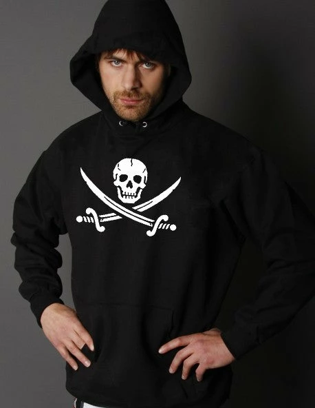 Biker Hoodies – Pirate Skull and Swords Adult Biker Hoodie. Look No Further, you have found on of the most Bad Ass Biker sweat shirts on the web. As a biker, you take pride in all you stand for, and now this exclusive line of Biker hoodies lets you wear whats on your mind. Forget prim and proper, these sweat shirts are blacked out and feature big, bold biker sayings on them. These hoodies look great beneath a leather vest, with a pair of your favorite jeans and those ol faithful boots that haven’t let you down in years. Every biker hoodie is available on any color hoodie you want…. as long as the color you want is black.