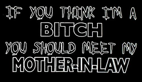 Bitch Mother In Law, You will be able to picture yourself walking anywhere in this Black Hooded 50/50 Sweatshirt. Designed for warmth and durability the 7.5 ounce, 50/50 blend fleece fabric with double-ply hood provides protection from a blinding snow storm at the North Pole or from blowing sand in the Mojave Desert. This hooded sweat is versitility plus. The convenient pouch pocket keeps hands warm or holds a water bottle. The matching drawstring and metal grommets on the hood make sure it stays where it belongs. The set-in sleeves, ribbed cuffs and banded bottom all keep this shirt together in a way that makes durability its middle name.