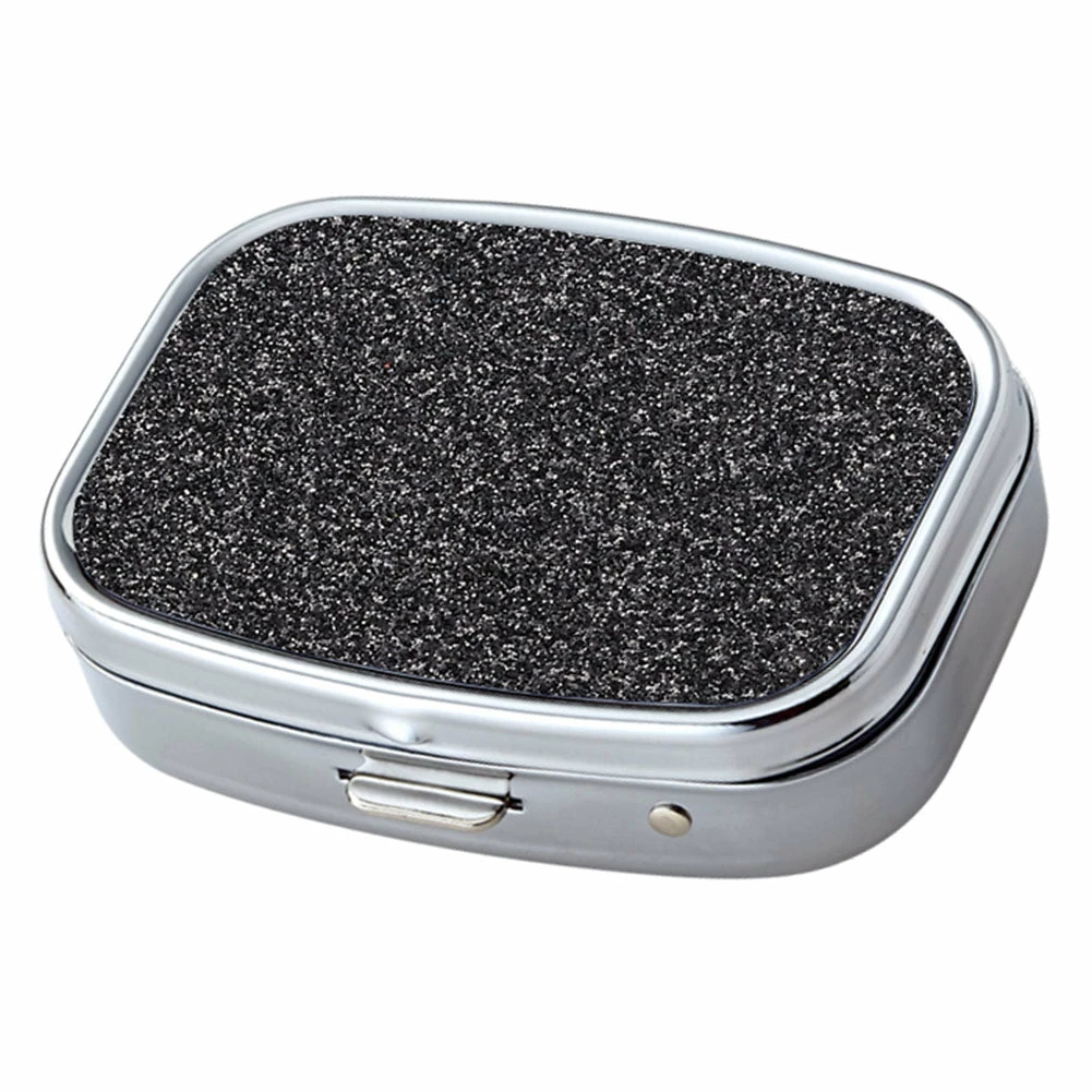 Bewild Black Glitter Pattern With Mirror Iron Chrome Plated Rectangular 2 Compartment Pill Box