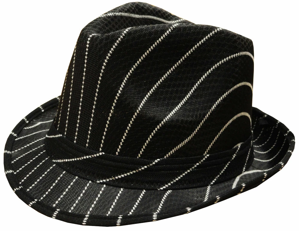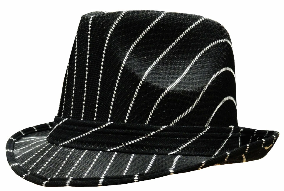 Black Pin-Striped Fedora Hat.