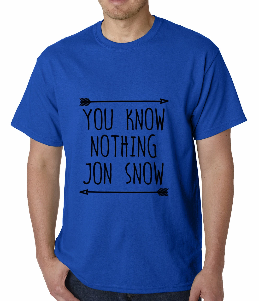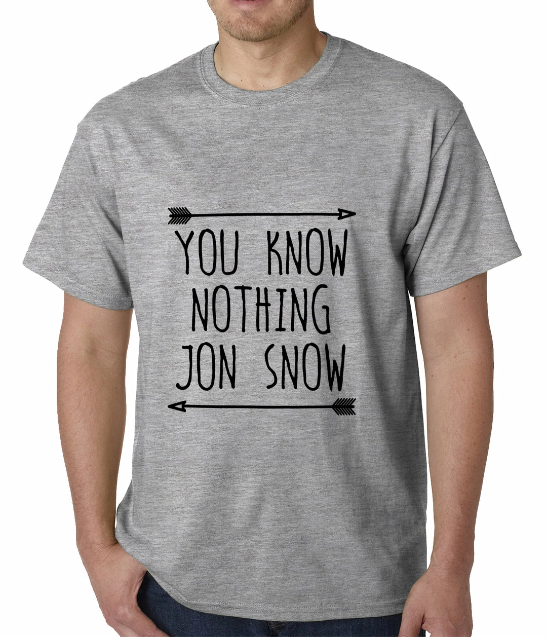 Get your hands on this amazing (Black Print) You Know Nothing Jon Snow Top. All of our (Black Print) You Know Nothing Jon Snow Tops have a classic, comfortable fit as well as being pre-shrunk, so you can expect little to no shrinkage.
