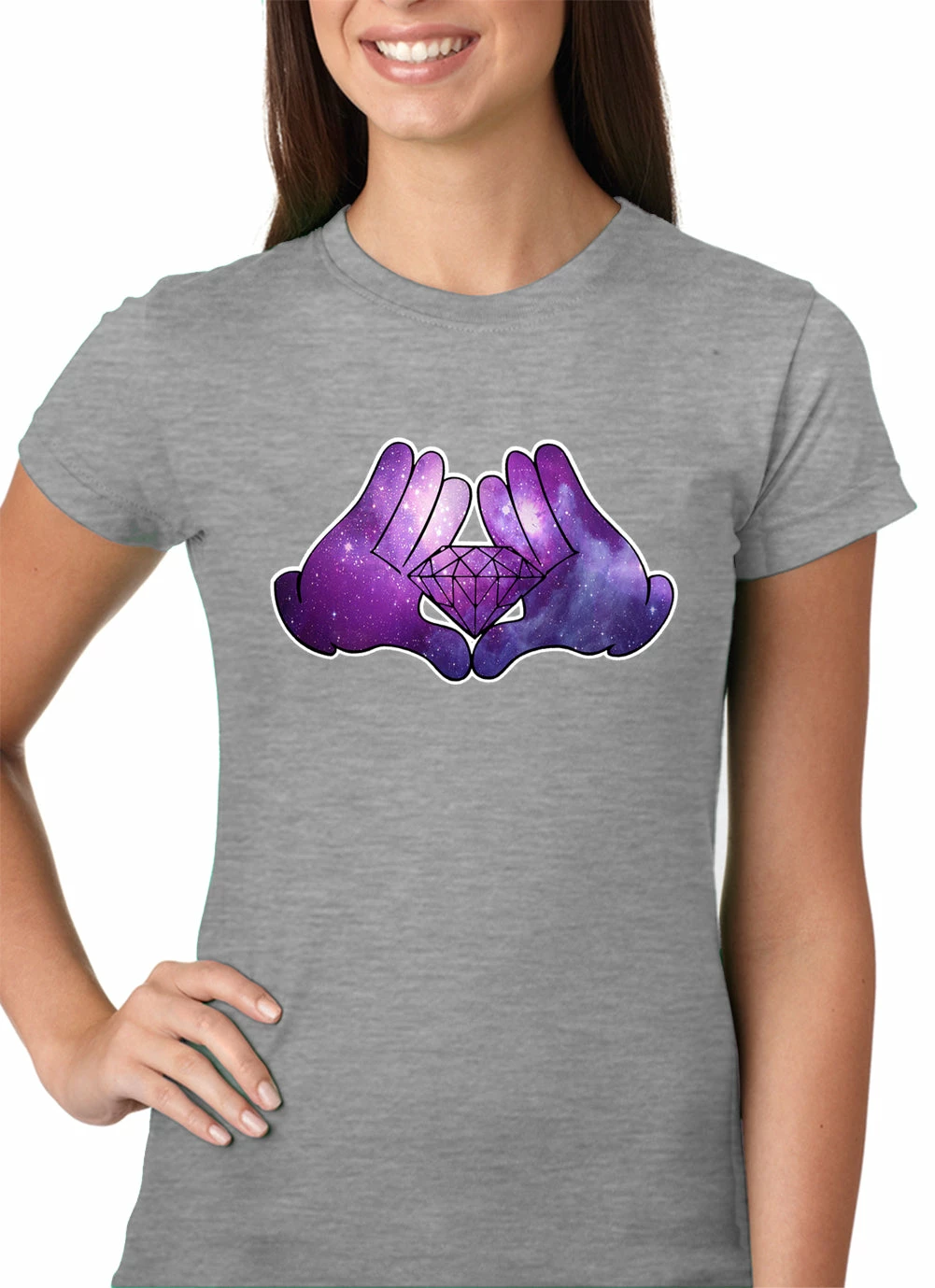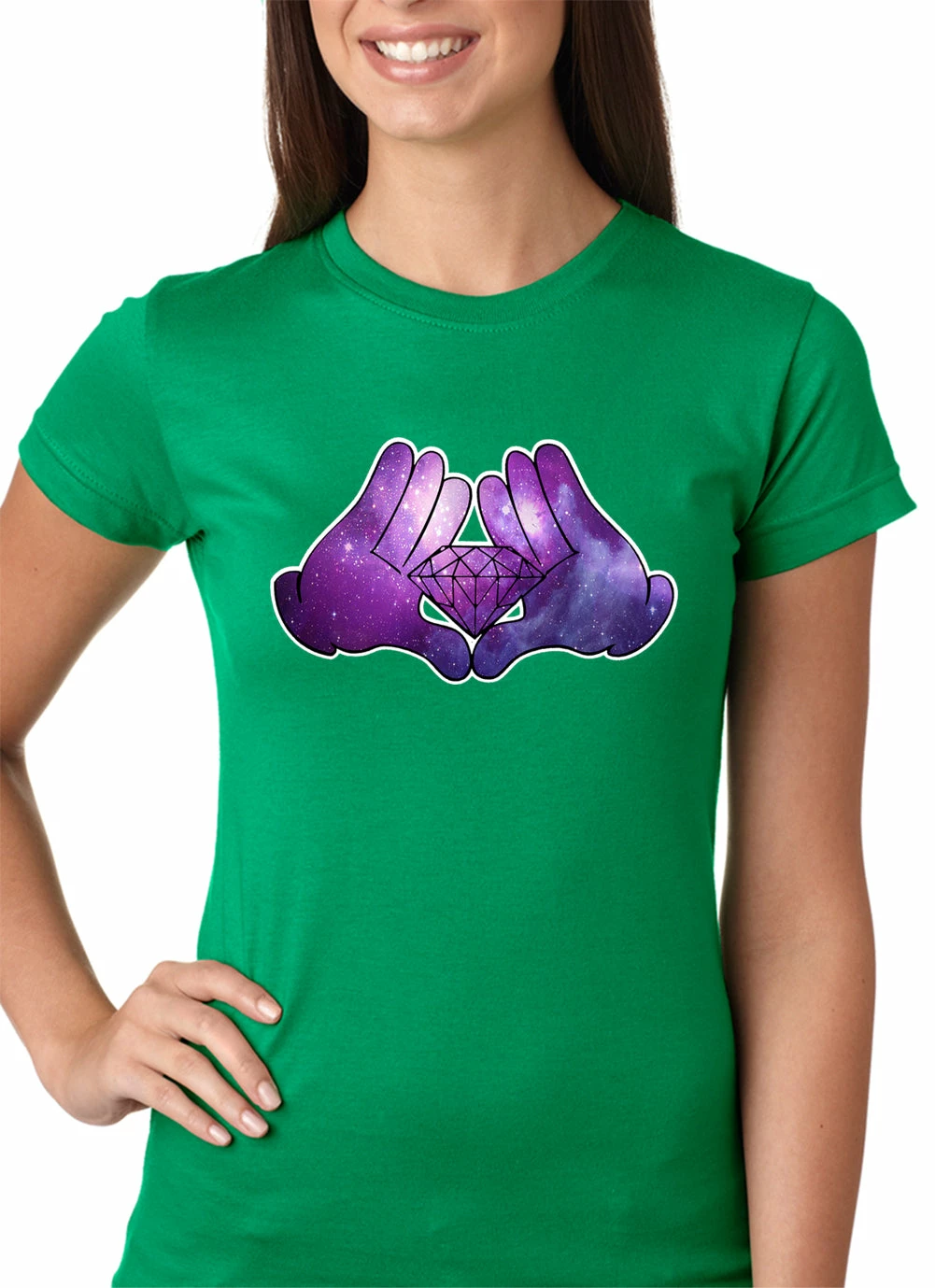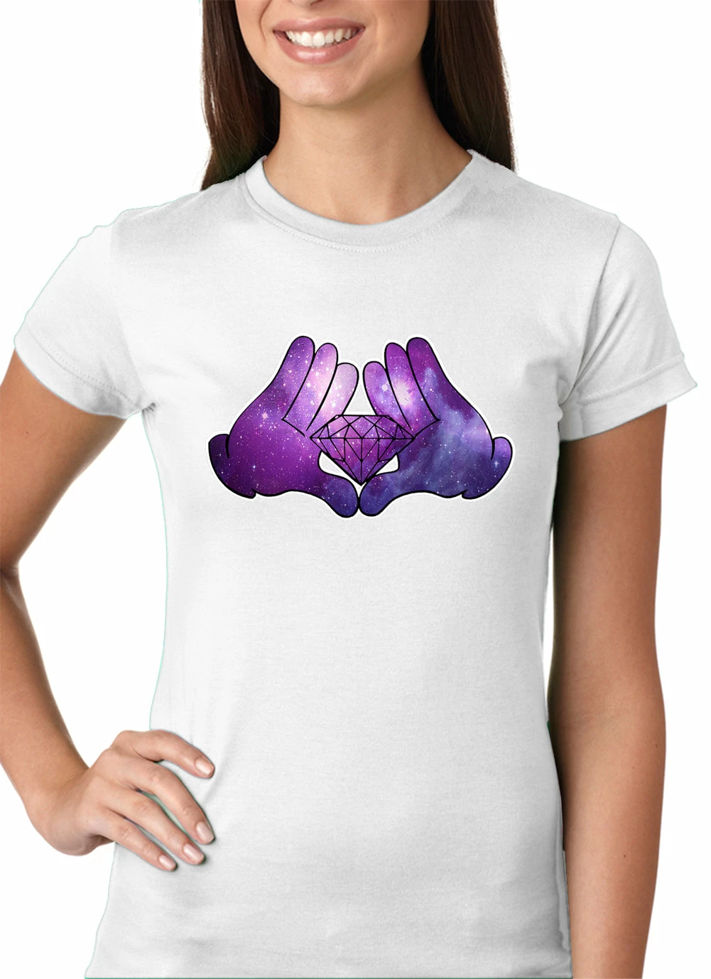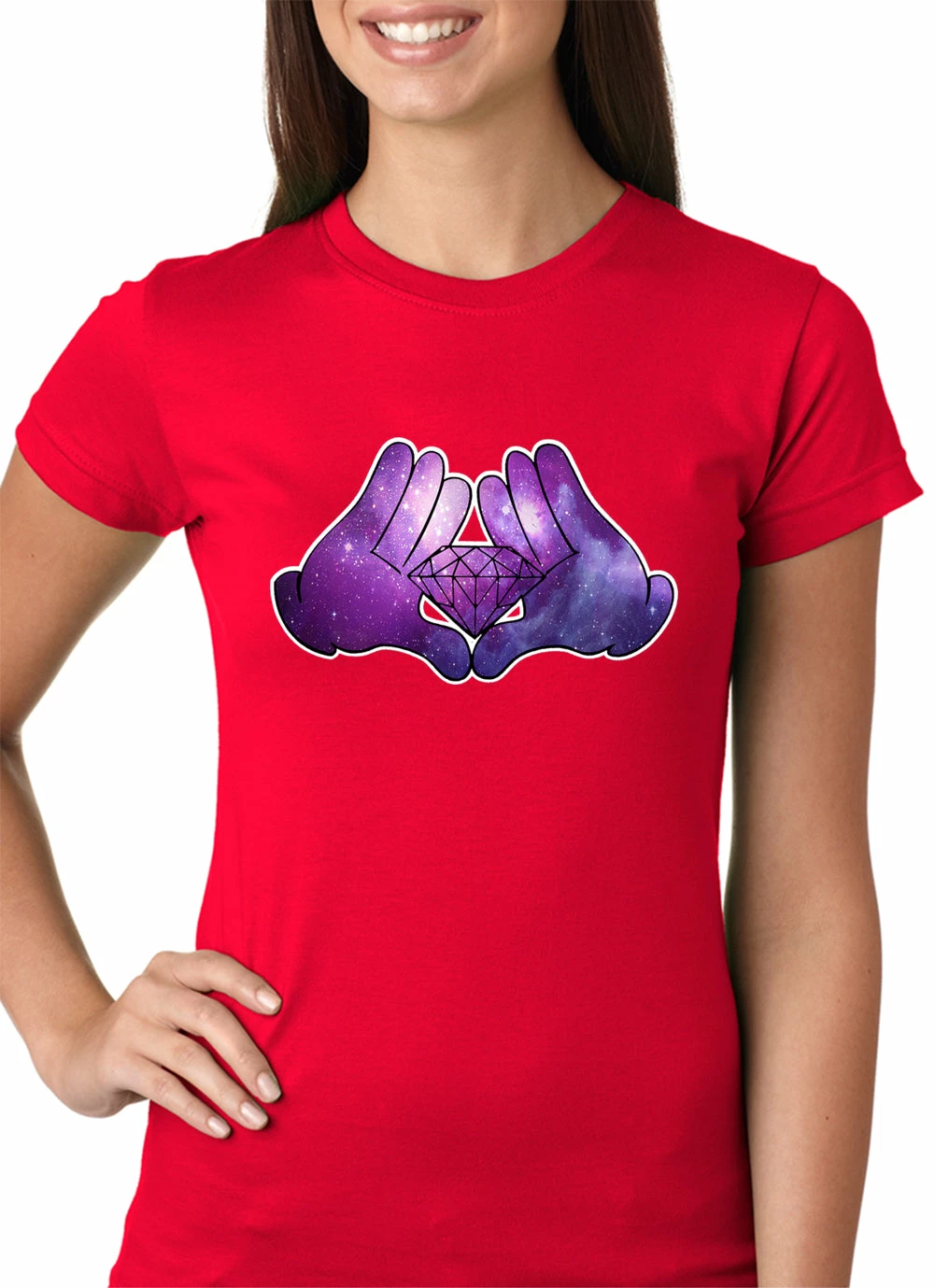 Cartoon Hands Diamond Cosmos Junior Fitted shirts are a S-32″ at bust and 29″ at waist, M-34″ at bust and 30″ at waist , L36″ at bust and 34″ at waist, XL-38″ at bust and 35″ at waist.