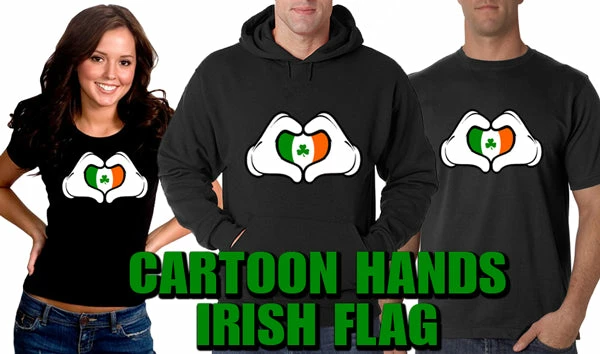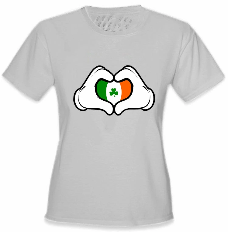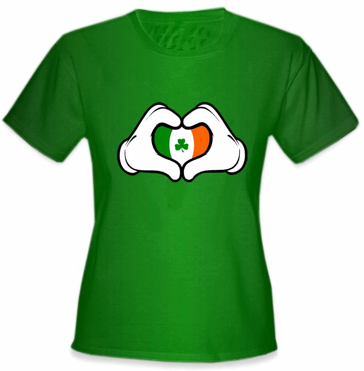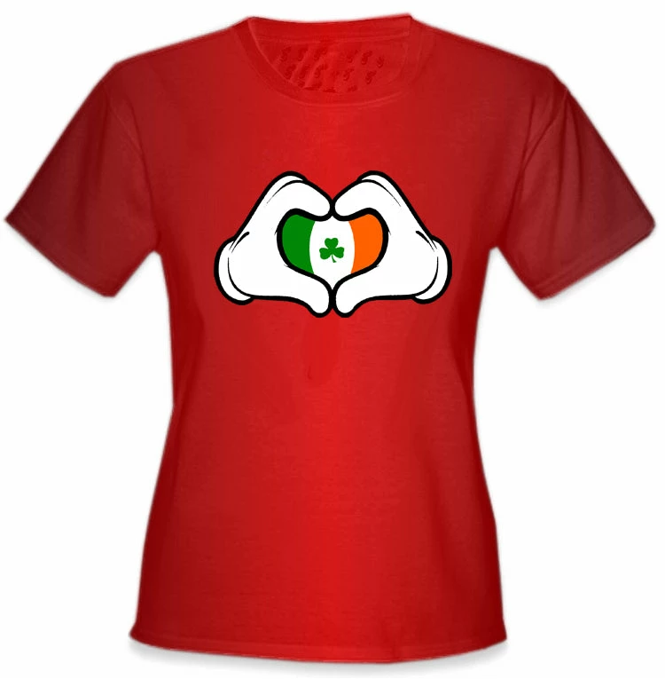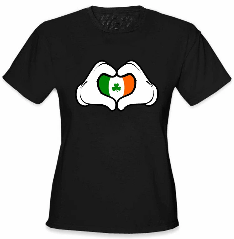 Cartoon Heart Hands Irish Flag Girl’s T-Shirt.