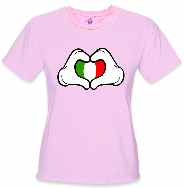 Cartoon Heart Hands Italian Flag Girl’s T-Shirt.