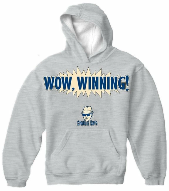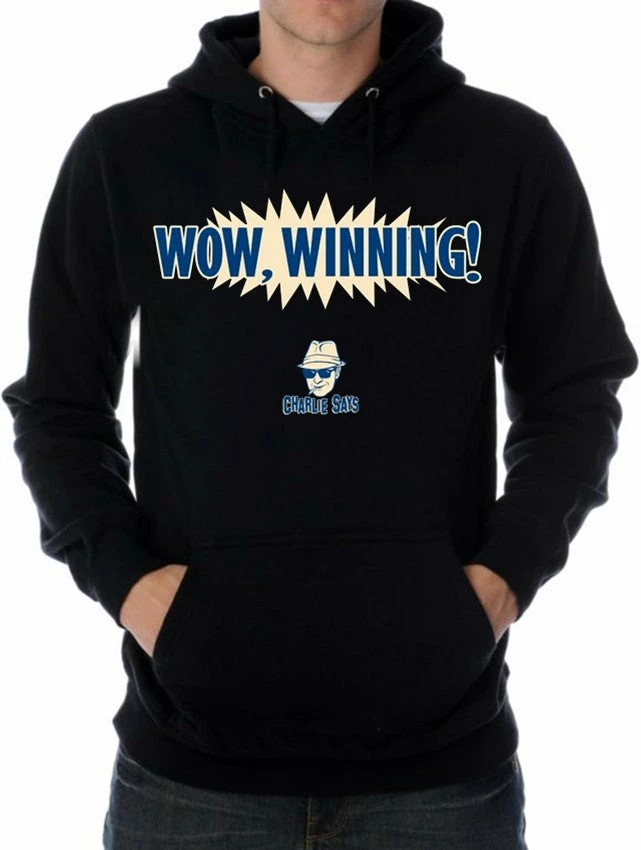 Charlie Says Shirts – Wow, Winning! Hoodie. Since Charlie Sheen’s interview he has become more popular then ever, forget two and a half men. Charlie Sheen quote sweatshirts have been in demand. Charlie Sheen has seemingly lost his mind and in celebration of the actor’s insanity we are proud to offer you this line of Cracked out shirts that feature some of Charlie’s most infamous sayings. These shirts will make you an instant party animal… if you can handle it. If you have Tiger Blood running threw your veins click the order button and expieriance Charlie Sheen Today! These sweatshirts may feature popular Charlie Sheen quotes but are in no way affiliated with Charlie Sheen.