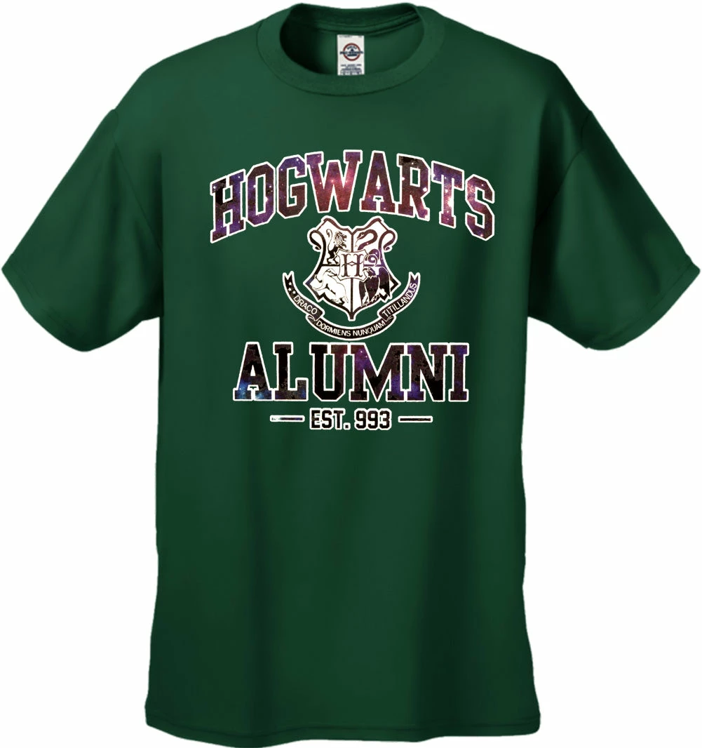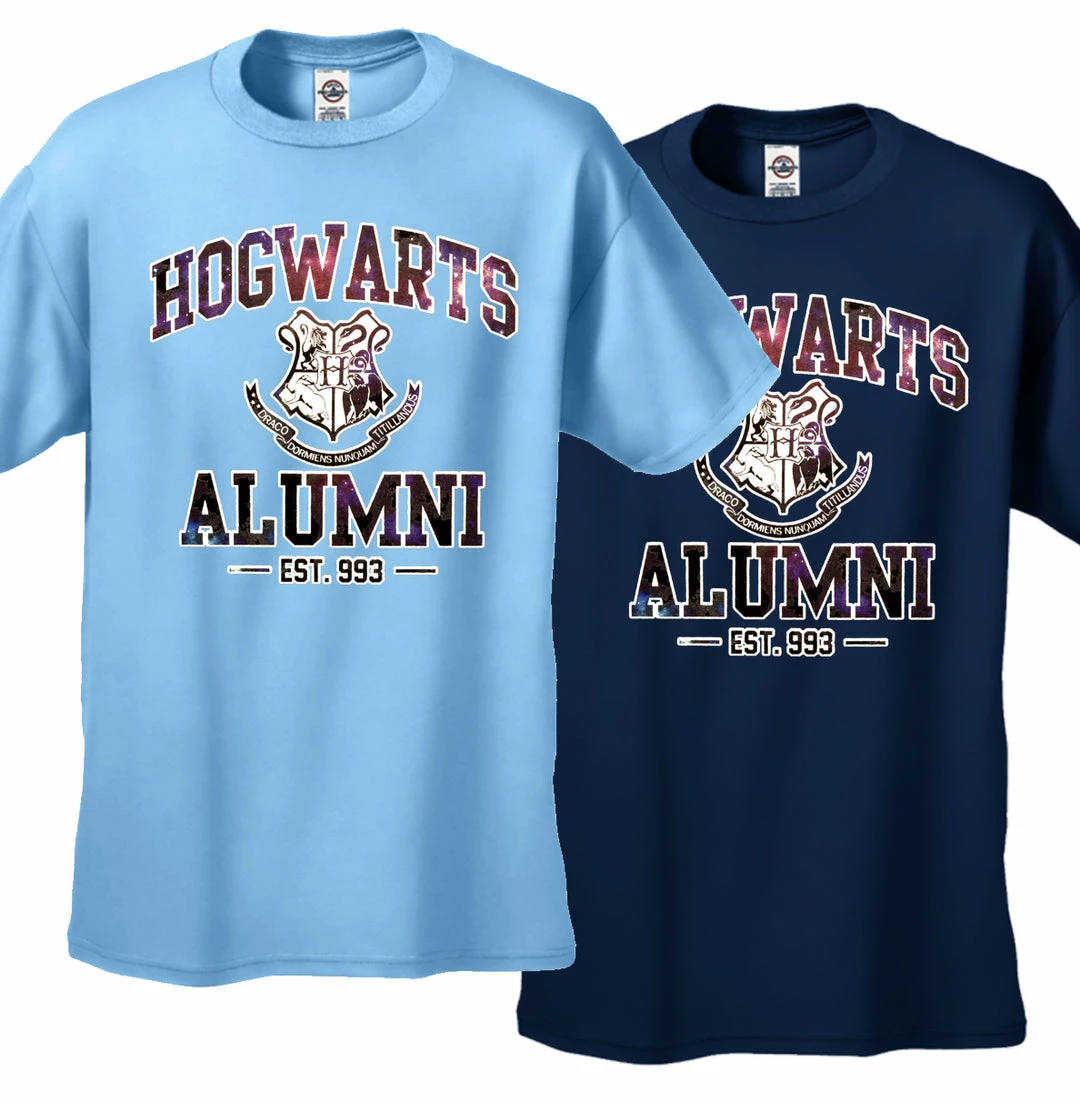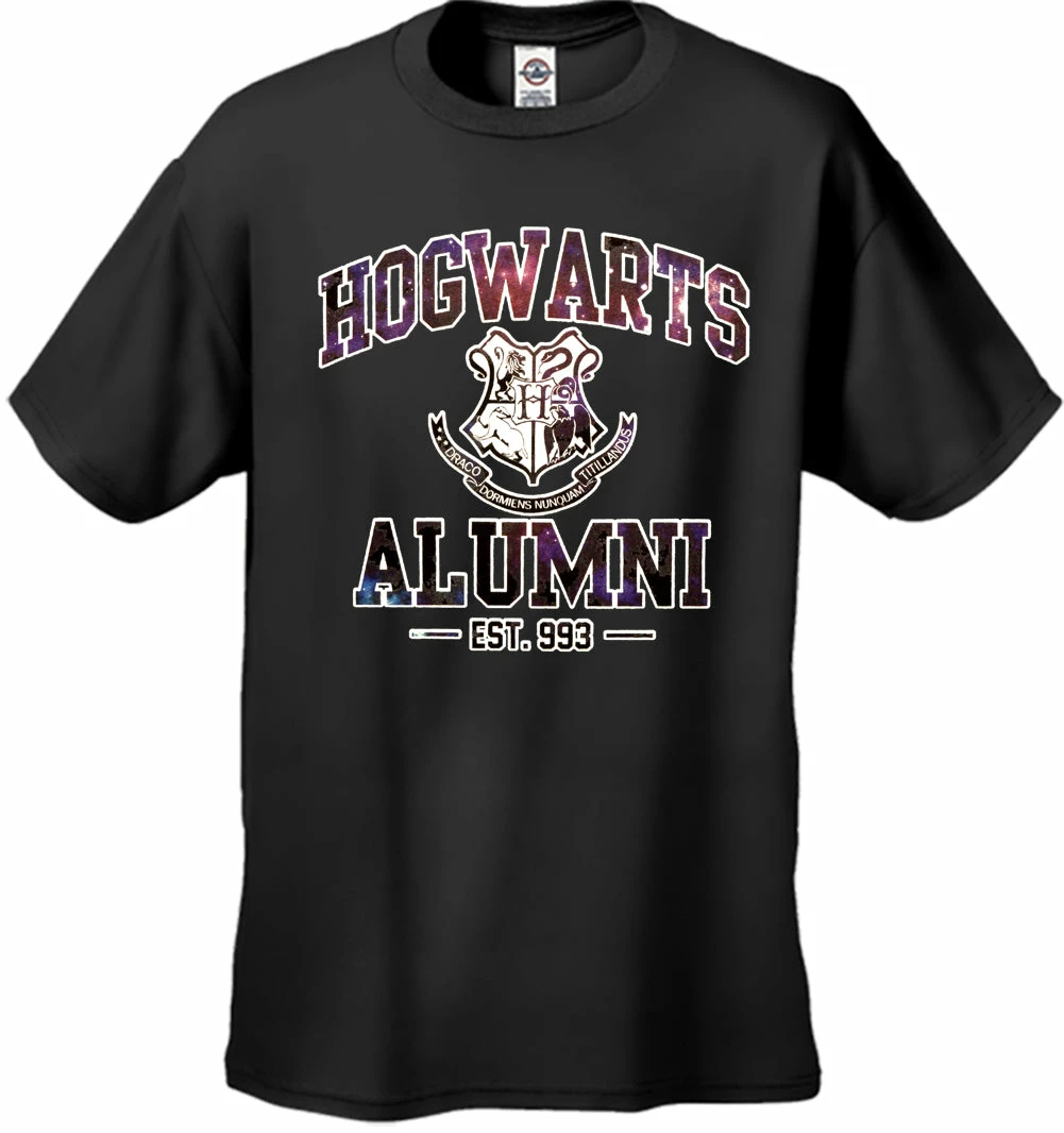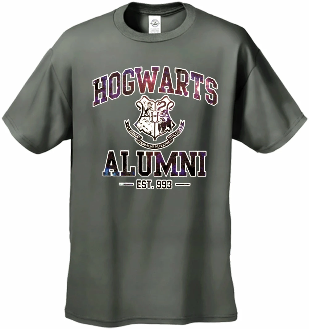 Hogwarts Alumni Galaxy Men’s T-Shirt features a classic 100% Cotton style is a great choice for anyone’s T-shirt drawer. These Hogwarts Alumni Galaxy Men’s T-Shirts have been printed with image on the front. These t shirts are made from heavyweight 6oz. 100% Preshrunk cotton. Looks Great, Priced right – and gets better with each washing.