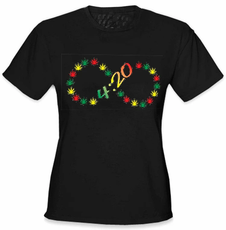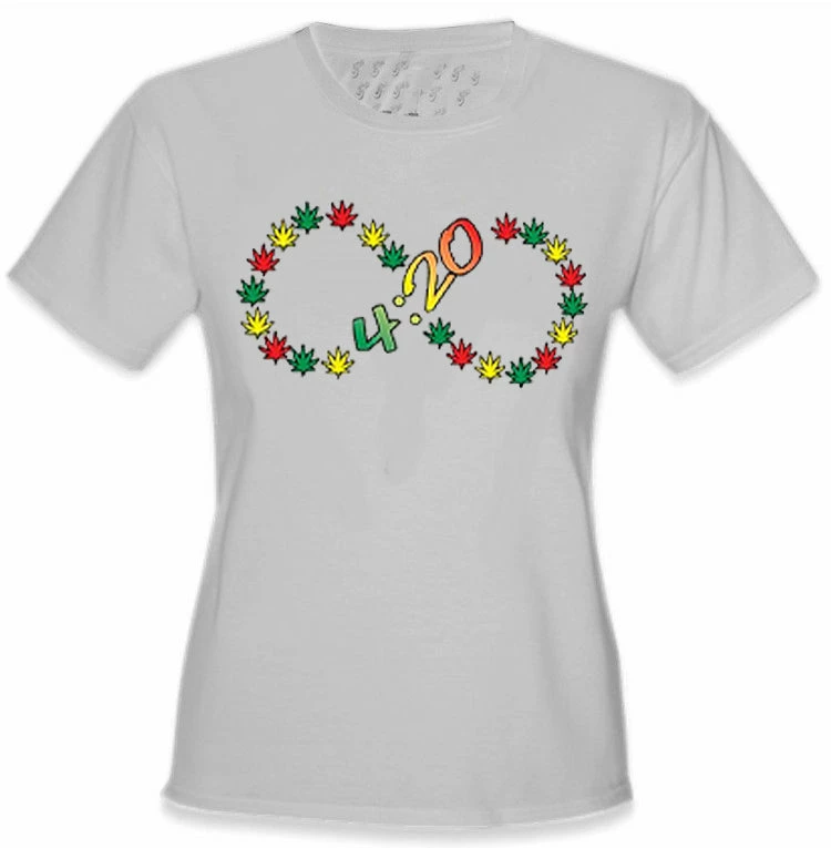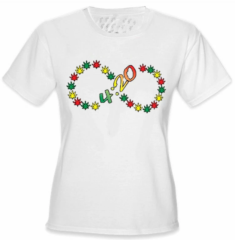 420 Infinity Girl’s T-Shirt . Junior Fitted shirts are a S-32″ at bust and 29″ at waist, M-34″ at bust and 30″ at waist , L36″ at bust and 34″ at waist, XL-38″ at bust and 35″ at waist.