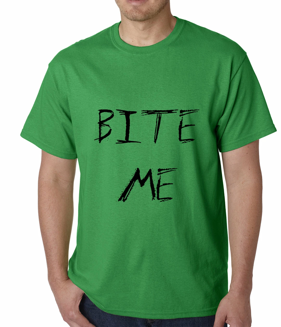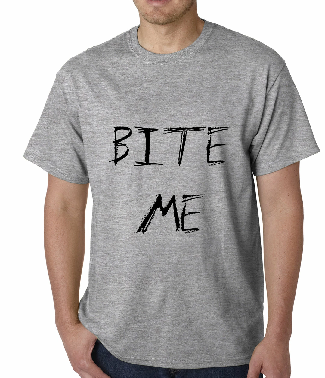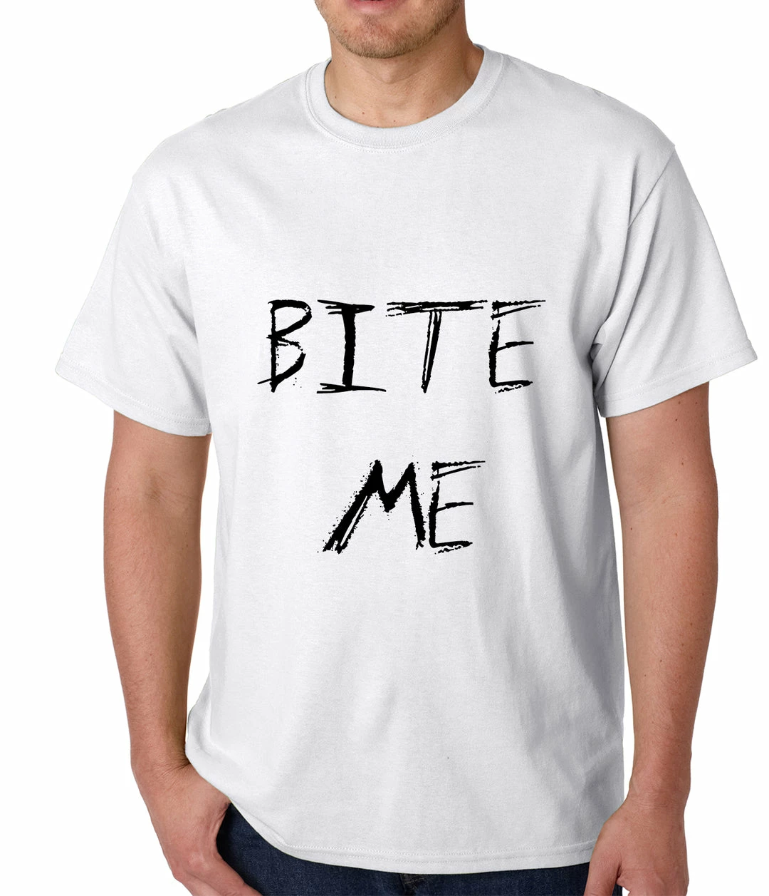 Bewild Cool Funny & Offensive Bite Me Zombie And Vampire Lovers Mens T-shirt