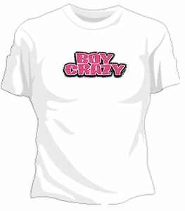 Boy Crazy Girls T-Shirt. Exclusively from Bewild.com, these new tee’s feature hard-core sayings that say it all. From “Trust Me I’m A Doctor” to “Thats Mr. Asshole To You”. How about a t-shirt that says “I Scored High On My Drug Test” Our short sleeve t-shirts are made from a 100% fully machine washable cotton/poly blend for a cool and comfortable fit every time. On the front of this shirt it says “Boy Crazy”.