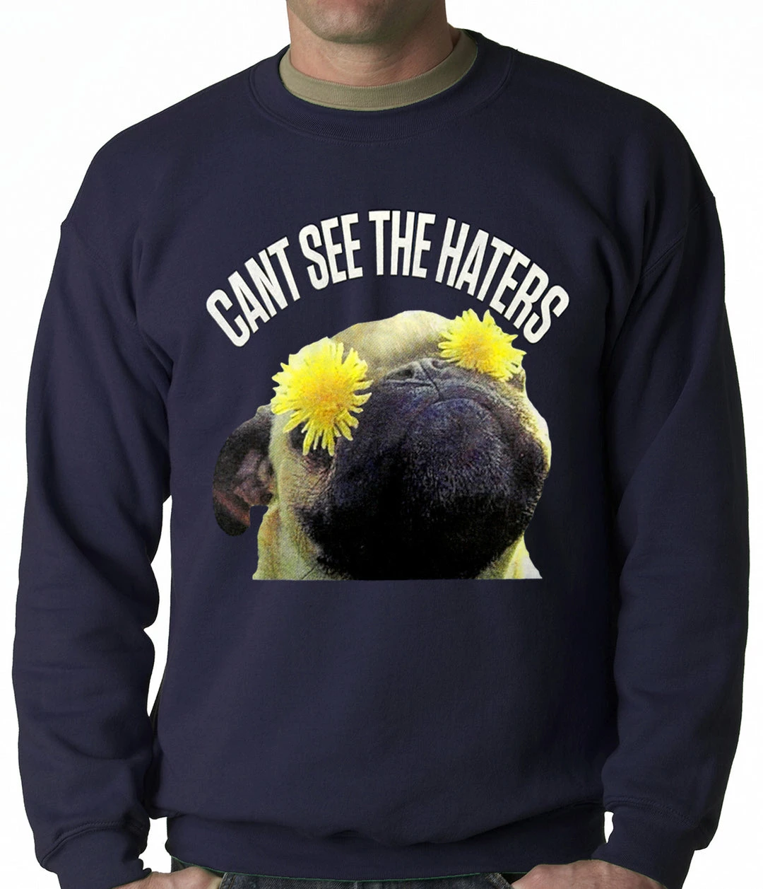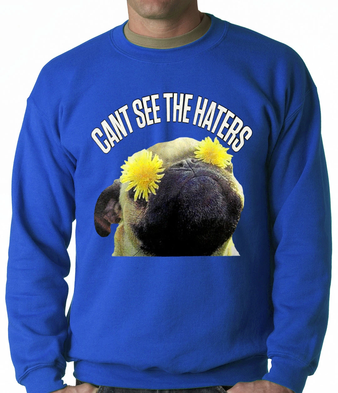 Bewild Cool Funny & Offensive Can’t See The Haters Funny Pug Adult Crewneck