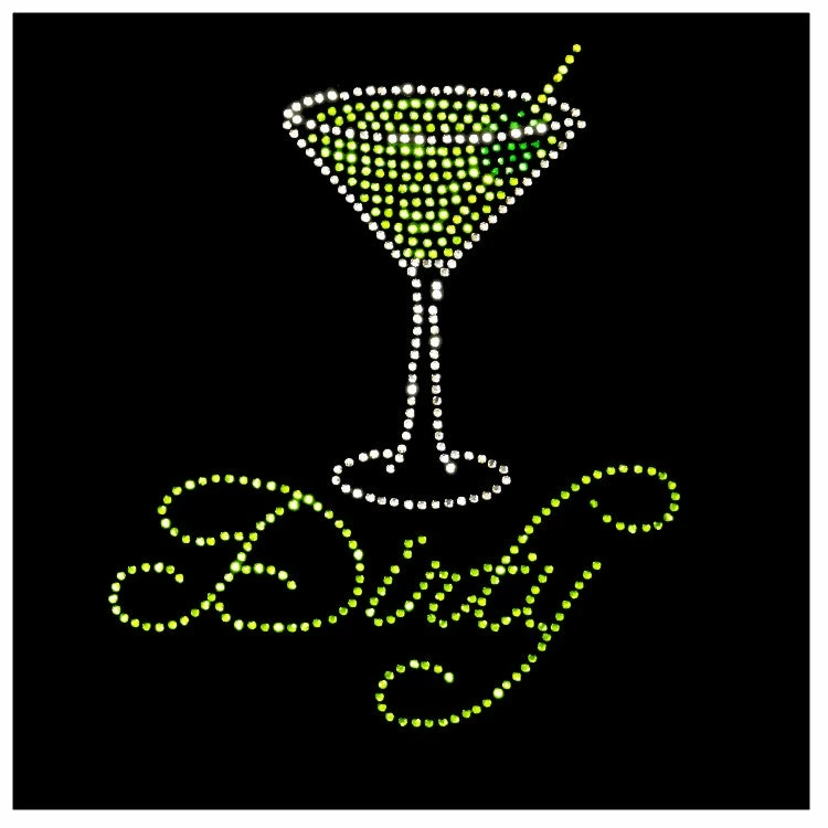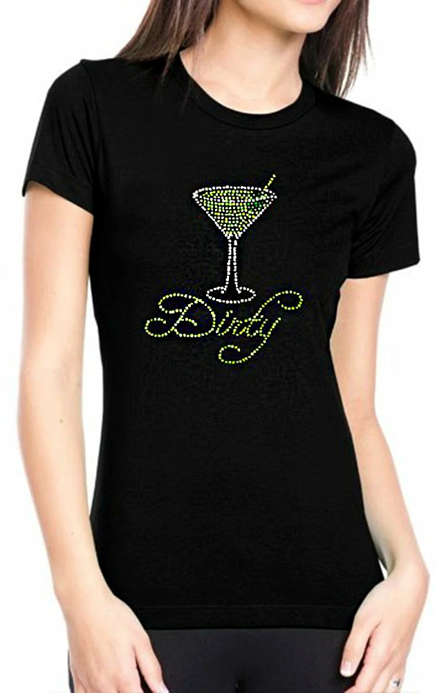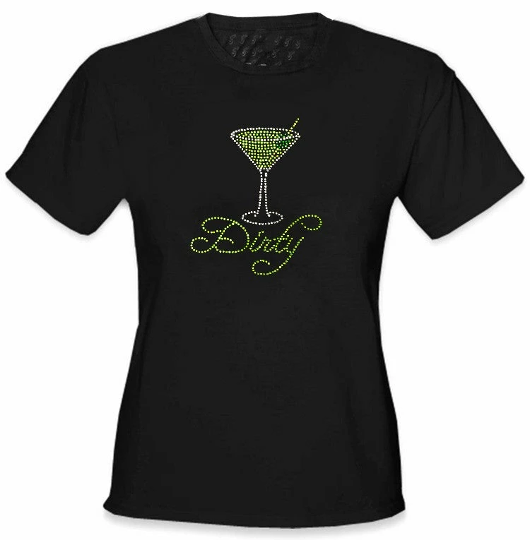 Dirty Martini Rhinestone Girls T-Shirt. For all you martini girls out there this dirty martini t-shirt features a design made entirely of rhinestones for a cute bling bling look! This shirt is a must have for all party girls and bartenders. Each Dirty Martini Rhinestone Girls T-Shirt features a deluxe rhinestone design the shine and shimmers in the light on a comfy cotton t-shirt. You are sure to love this sweet and sassy t-shirt.