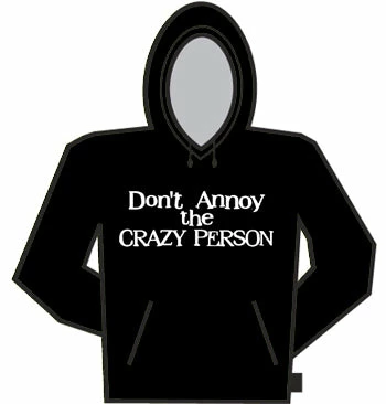 Don’t Annoy The Crazy, You will be able to picture yourself walking anywhere in this Black Hooded 50/50 Sweatshirt. Designed for warmth and durability the 7.5 ounce, 50/50 blend fleece fabric with double-ply hood provides protection from a blinding snow storm at the North Pole or from blowing sand in the Mojave Desert. This hooded sweat is versitility plus. The convenient pouch pocket keeps hands warm or holds a water bottle. The matching drawstring and metal grommets on the hood make sure it stays where it belongs. The set-in sleeves, ribbed cuffs and banded bottom all keep this shirt together in a way that makes durability its middle name.