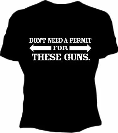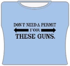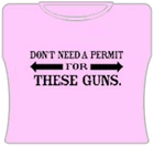 Dont Need A Permit For These Guns Girls T-Shirt. Exclusively from Bewild.com, these new tee’s feature hard-core sayings that say it all. From “Trust Me I’m A Doctor” to “Thats Mr. Asshole To You”. How about a t-shirt that says “I Scored High On My Drug Test” Our short sleeve t-shirts are made from a 100% fully machine washable cotton/poly blend for a cool and comfortable fit every time. On the front of this shirt it says “You Don’t Need A Permit For These Guns”