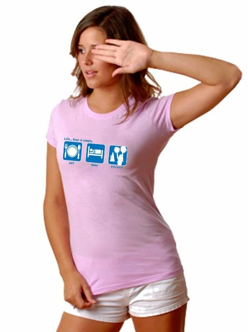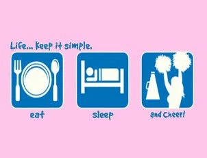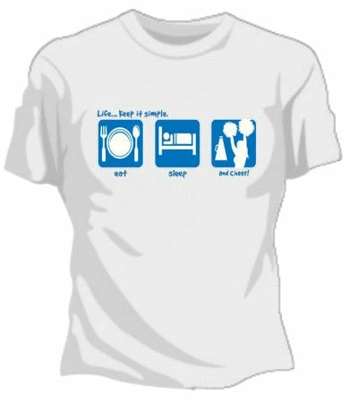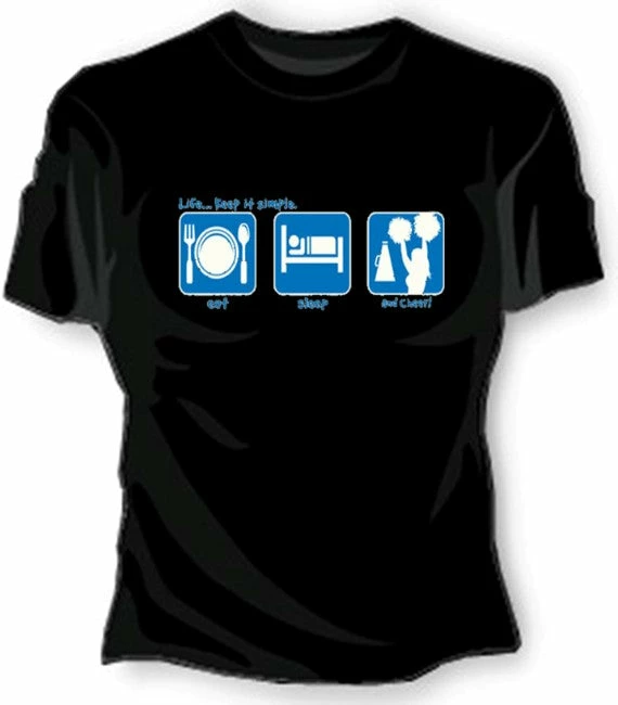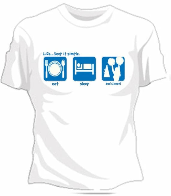 Get ready to root for your team and show some spirit. Cheer! This girls LIFE: Keep it simple t-shirt will let the world know you eat, sleep and live for Cheerleading. This cute girly tee is sure to show your spirit!
