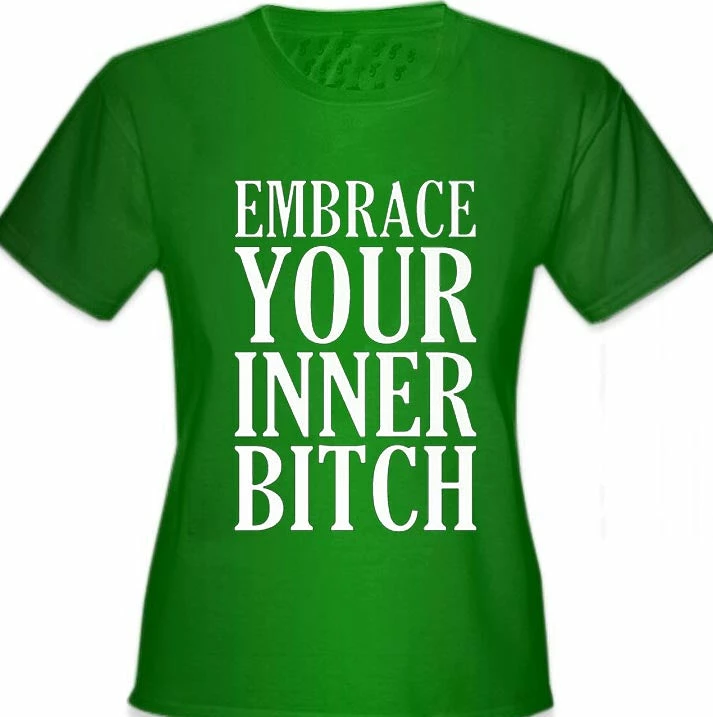 Junior Fitted Embrace Your Inner Bitch Girl’s T-Shirt are a S-32″ at bust and 29″ at waist, M-34″ at bust and 30″ at waist , L36″ at bust and 34″ at waist, XL-38″ at bust and 35″ at waist.