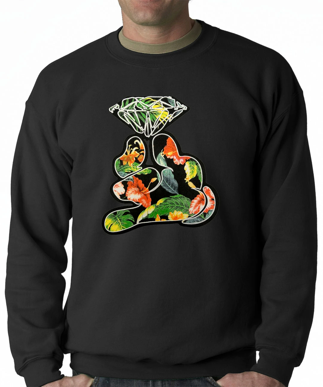 Bewild Cool Funny & Offensive Floral Cartoon Diamond Hand Adult Crewneck