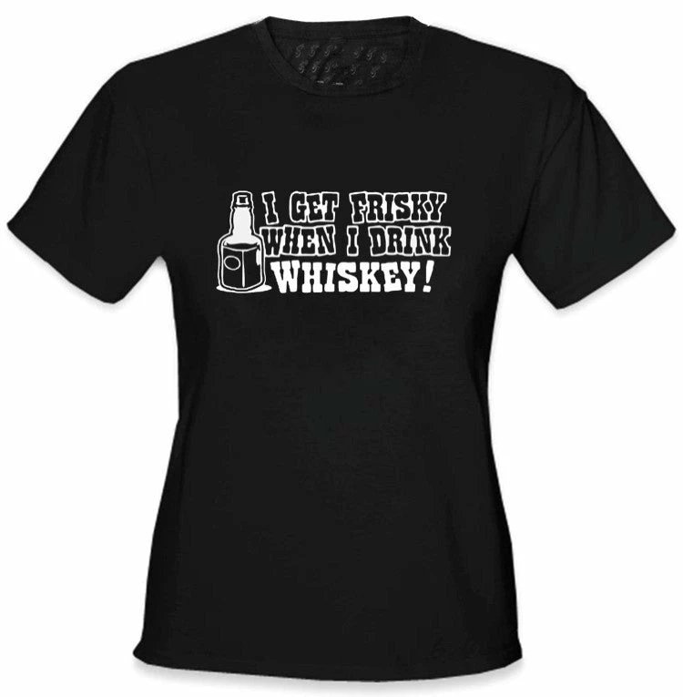 Friskey When I Drink Whiskey Girls T-Shirt. Now say it with a Statement T-Shirt. Exclusively from Bewild.com, these new tee’s feature hard-core sayings that say it all. From “Lick Here For Full View” to “Skanky white-trailer trash”. How about a t-shirt that says “Dip me in Chocolate and throw me to the lesbians?” Our short sleeve “Friskey When I Drink Whiskey” t-shirts are made from a 100% fully machine washable preshrunk cotton for a cool and comfortable fit every time.