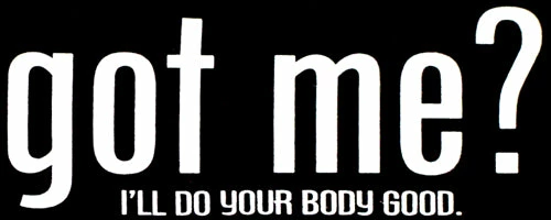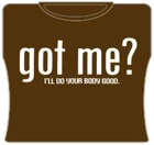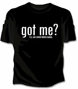 Got Me? Girls T-Shirt. Exclusively from Bewild.com, these new tee’s feature hard-core sayings that say it all. From “Lick Here For Full View” to “Skanky white-trailer trash”. How about a t-shirt that says “Dip me in Chocolate and throw me to the lesbians?” Our short sleeve “Got Me?” t-shirts are made from a 100% fully machine washable preshrunk cotton for a cool and comfortable fit every time.