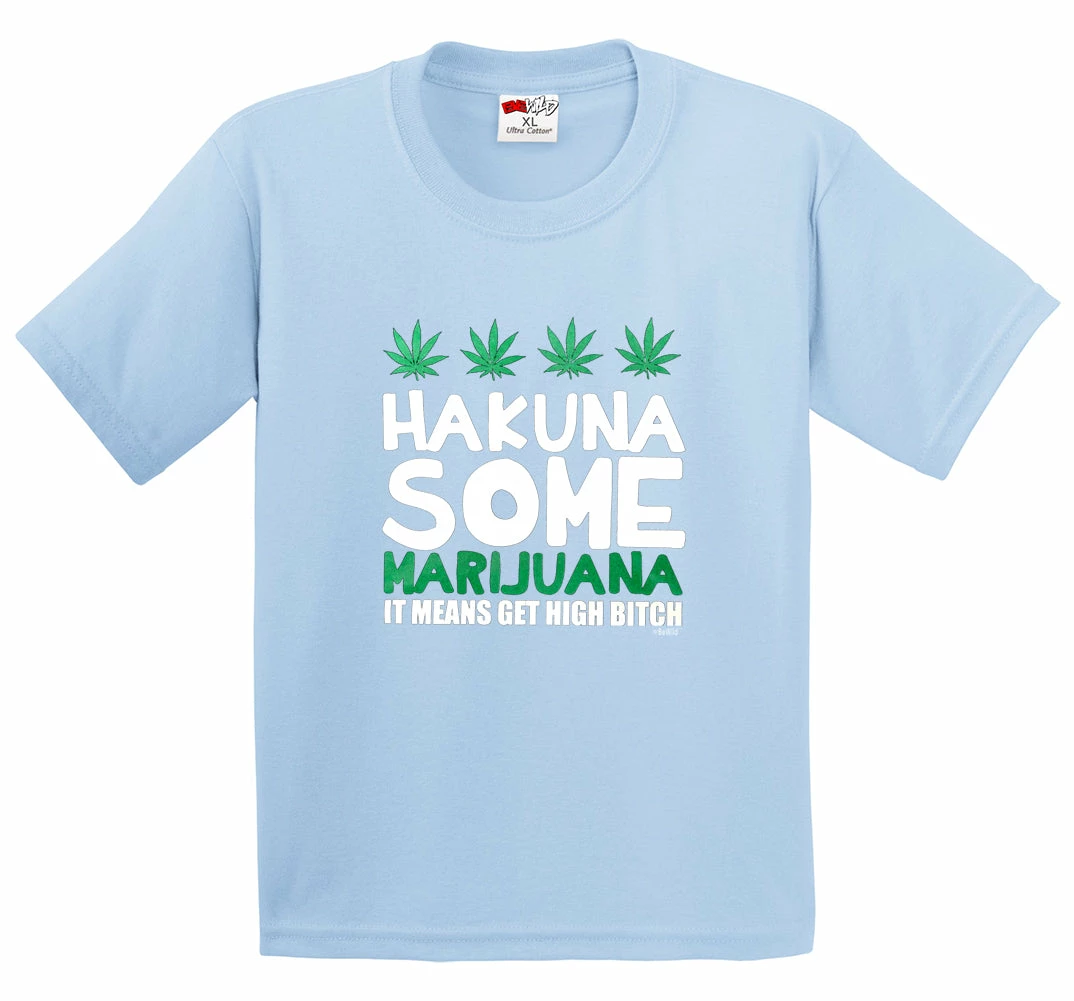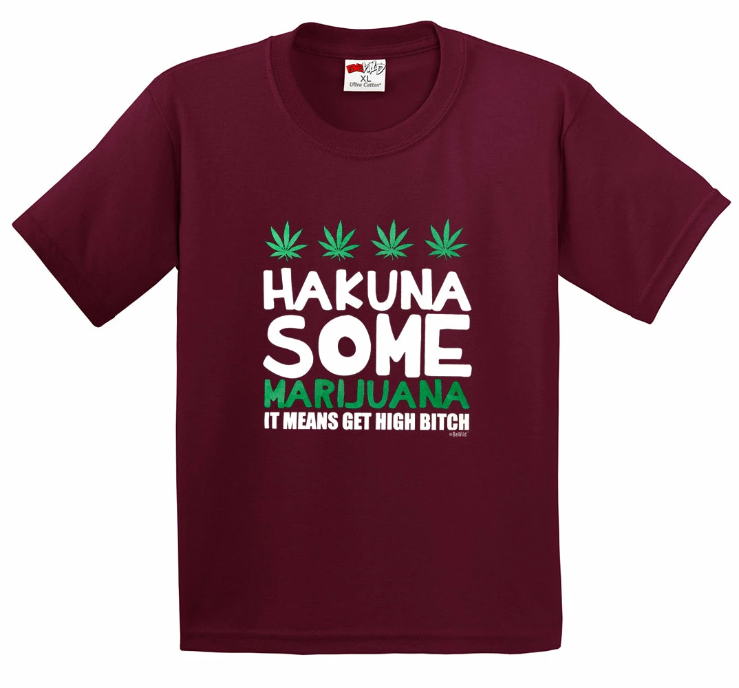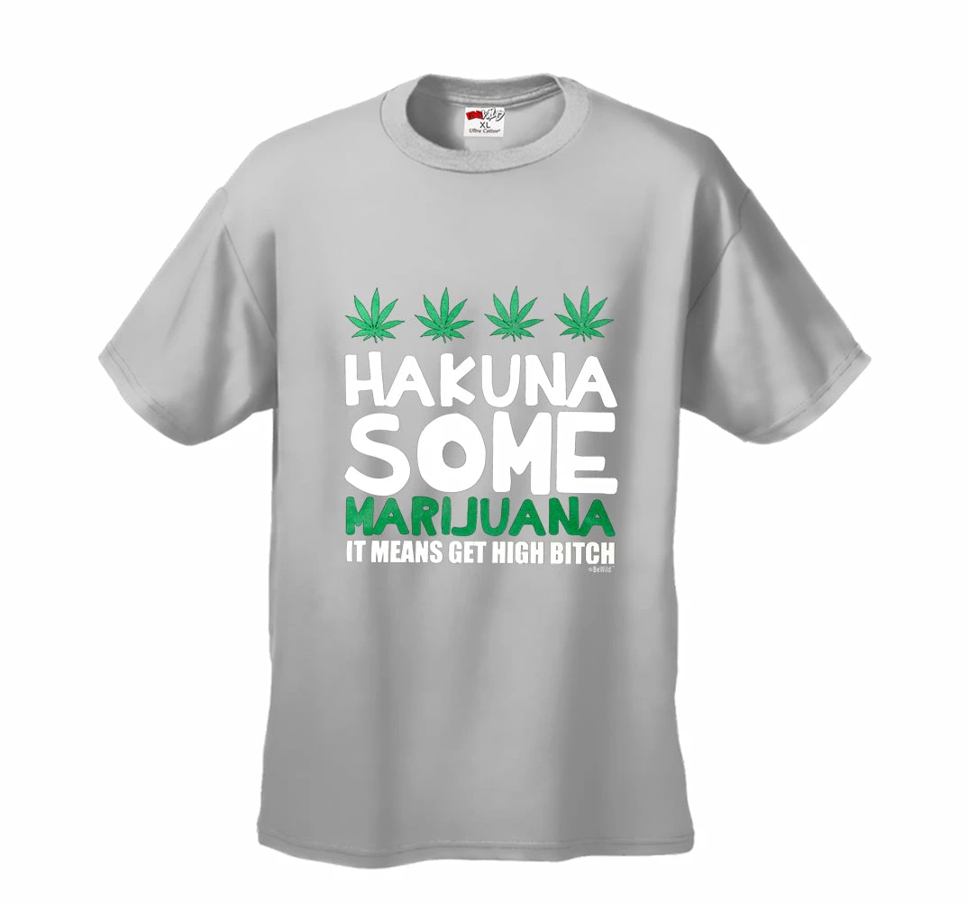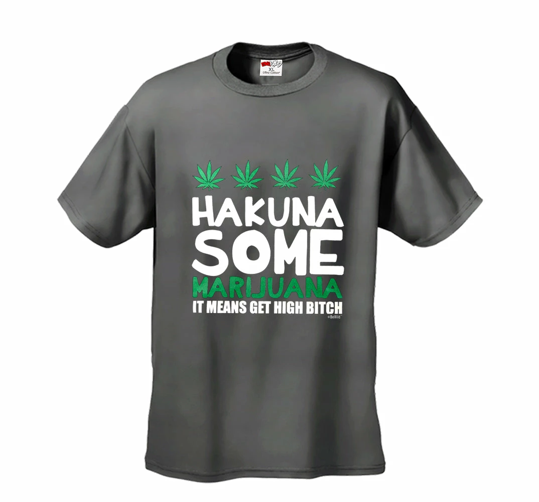 Hakuna Some Marijuana Men’s T-Shirt features a classic 100% Cotton style is a great choice for anyone’s T-shirt drawer. These Hakuna Some Marijuana Men’s T-Shirts have been printed with image on the front. These t shirts are made from heavyweight 6oz. 100% Preshrunk cotton. Looks Great, Priced right – and gets better with each washing.