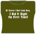 I Don’t Look Busy Girls T-Shirt. Exclusively from Bewild.com, these new tee’s feature hard-core sayings that say it all. From “Trust Me I’m A Doctor” to “Thats Mr. Asshole To You”. How about a t-shirt that says “I Scored High On My Drug Test” Our short sleeve t-shirts are made from a 100% fully machine washable cotton/poly blend for a cool and comfortable fit every time. On the front of this shirt it says “Of course I don’t look busy, I did it right the frst time!”