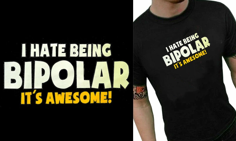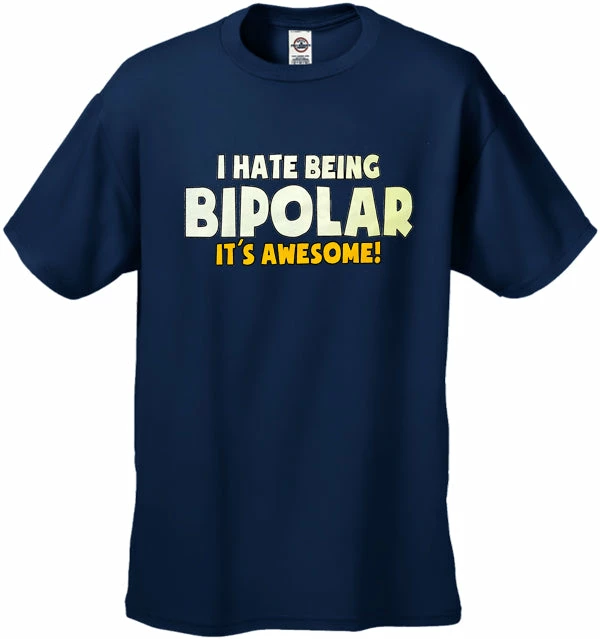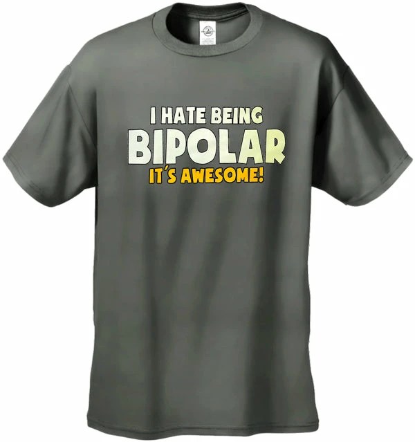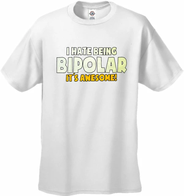 I Hate being Bipolar It’s Awesome features a classic 100% Cotton style is a great choice for anyone. These I Hate being Bipolar It’s Awesome Men’s T-Shirt have been printed with image on the front. These t shirts are made from heavyweight 6oz. 100% Preshrunk cotton. Looks Great, Priced right – and gets better with each washing.