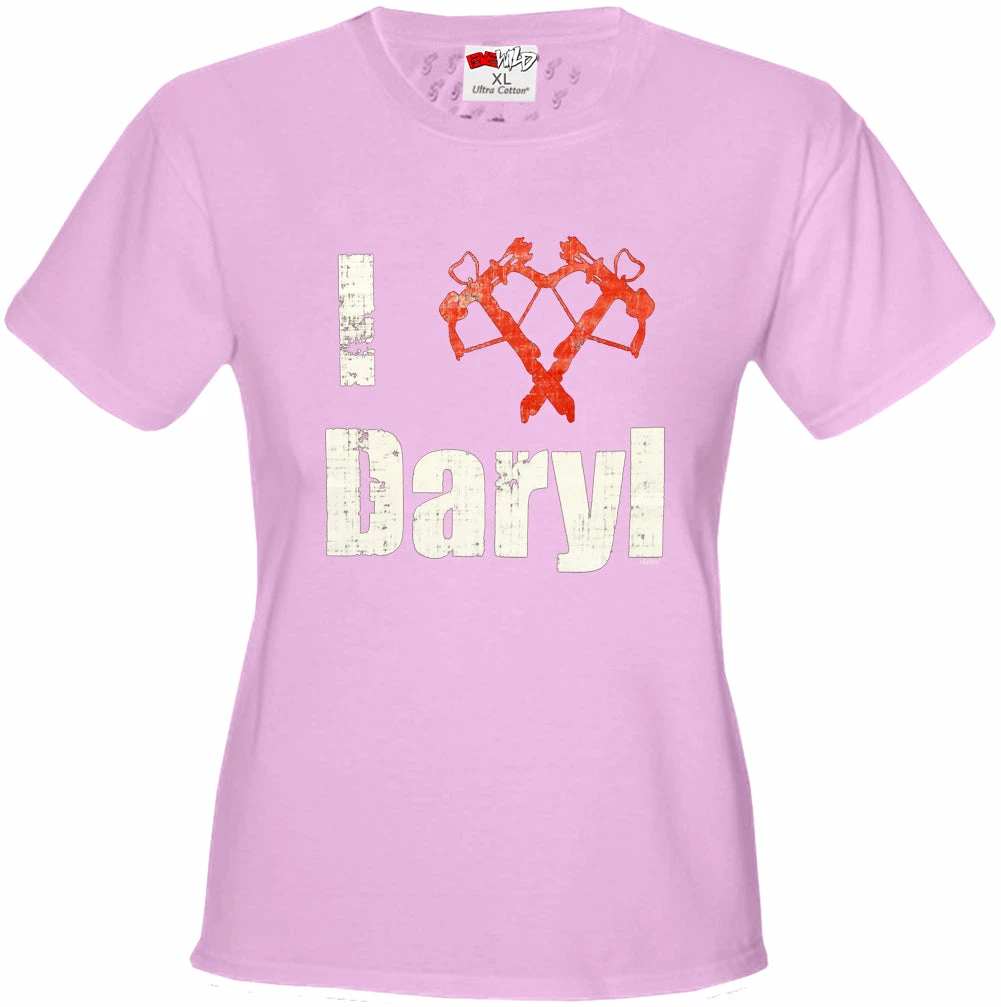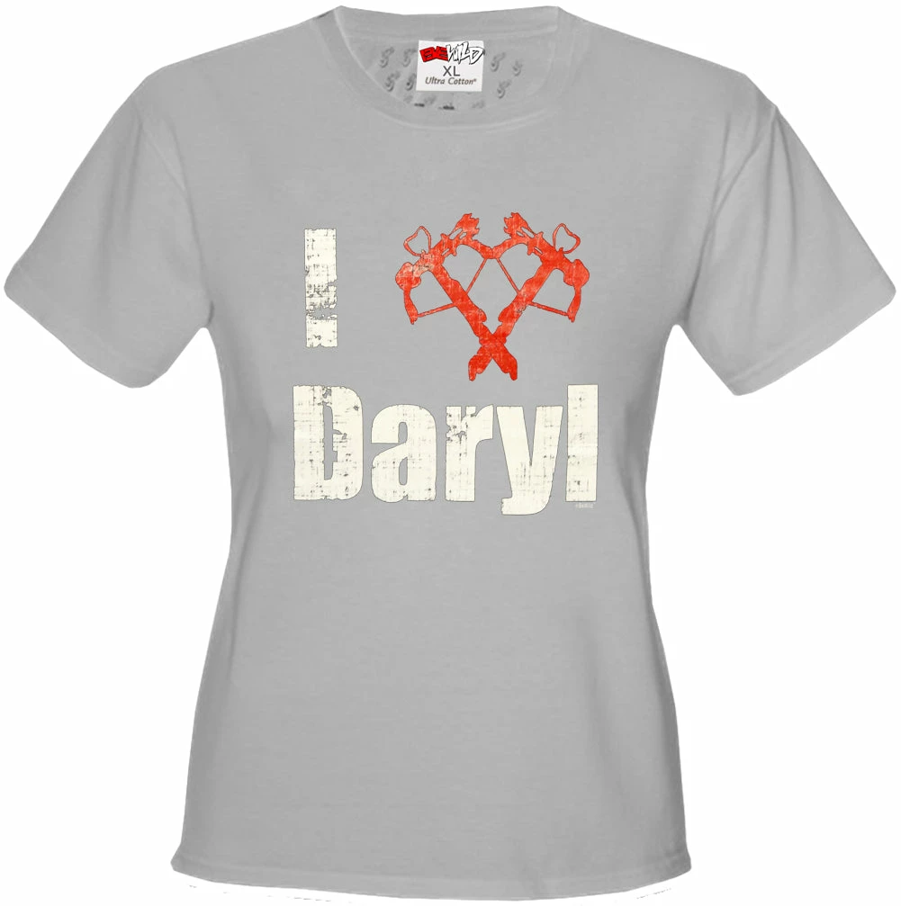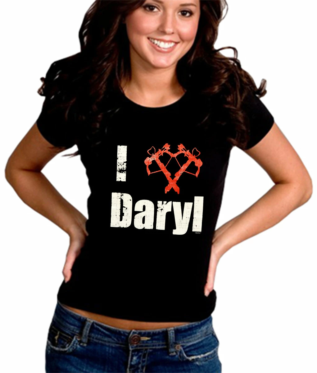I Love Daryl Crossbow Heart Junior Fitted shirts are a S-32″ at bust and 29″ at waist, M-34″ at bust and 30″ at waist , L36″ at bust and 34″ at waist, XL-38″ at bust and 35″ at waist.