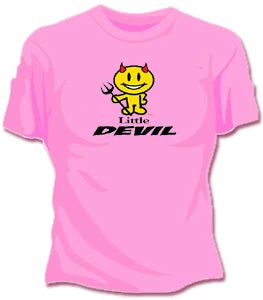 Little Devil Girls T-Shirt. Exclusively from Bewild.com, these new tee’s feature hard-core sayings that say it all. From “Trust Me I’m A Doctor” to “Thats Mr. Asshole To You”. How about a t-shirt that says “I Scored High On My Drug Test” Our short sleeve t-shirts are made from a 100% fully machine washable cotton/poly blend for a cool and comfortable fit every time. On the front of this shirt it says “Little Devil”.