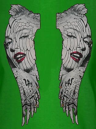 Junior Fitted Marilyn Monroe Wings shirts are a S-32″ at bust and 29″ at waist, M-34″ at bust and 30″ at waist , L36″ at bust and 34″ at waist, XL-38″ at bust and 35″ at waist.