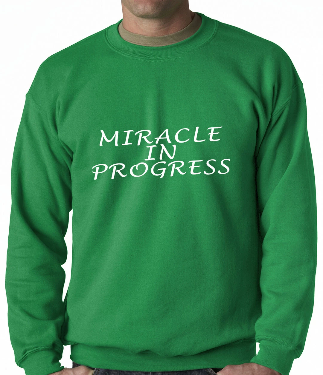 Bewild Cool Funny & Offensive Miracle In Progress Adult Crewneck