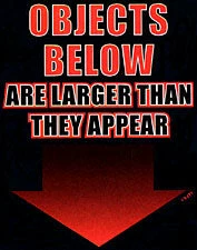 Objects Below Are Large T-Shirt. Exclusively from Bewild.com, these new tee’s feature hard-core sayings that say it all. From “Trust Me I’m A Doctor” to “Thats Mr. Asshole To You”. How about a t-shirt that says “I Scored High On My Drug Test” Our short sleeve t-shirts are made from a 100% fully machine washable cotton/poly blend for a cool and comfortable fit every time. On the front of this shirt it says “Objects Below Are Larger Than They Appear”.