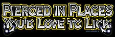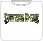 Places You’d Love To Lick T-Shirt. Exclusively from Bewild.com, these new tee’s feature hard-core sayings that say it all. From “Lick Here For Full View” to “Skanky white-trailer trash”. How about a t-shirt that says “Dip me in Chocolate and throw me to the lesbians?” Our short sleeve “Pierced In Places You’d Love To Lick” t-shirts are made from a 100% fully machine washable cotton/poly blend for a cool and comfortable fit every time.