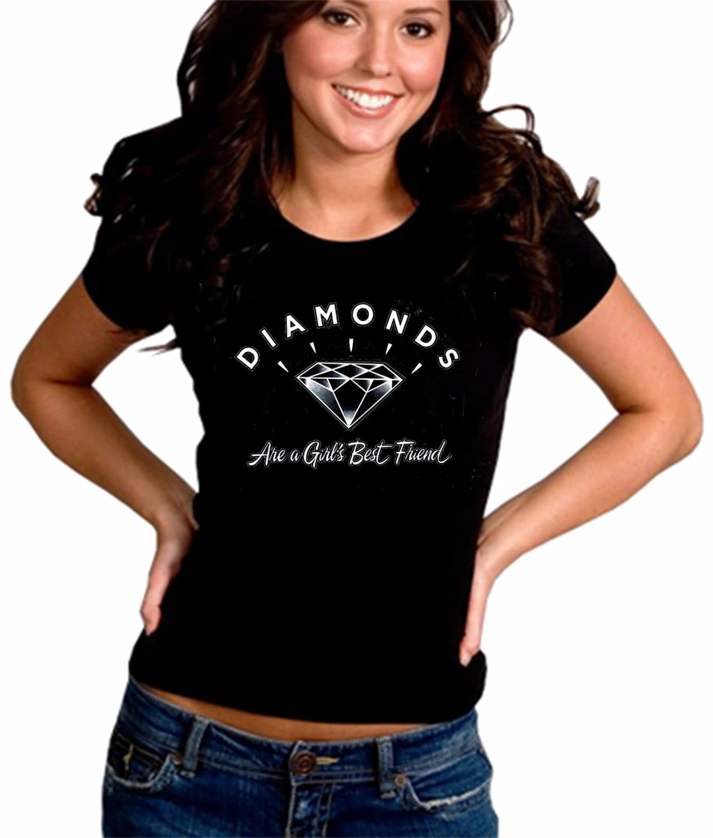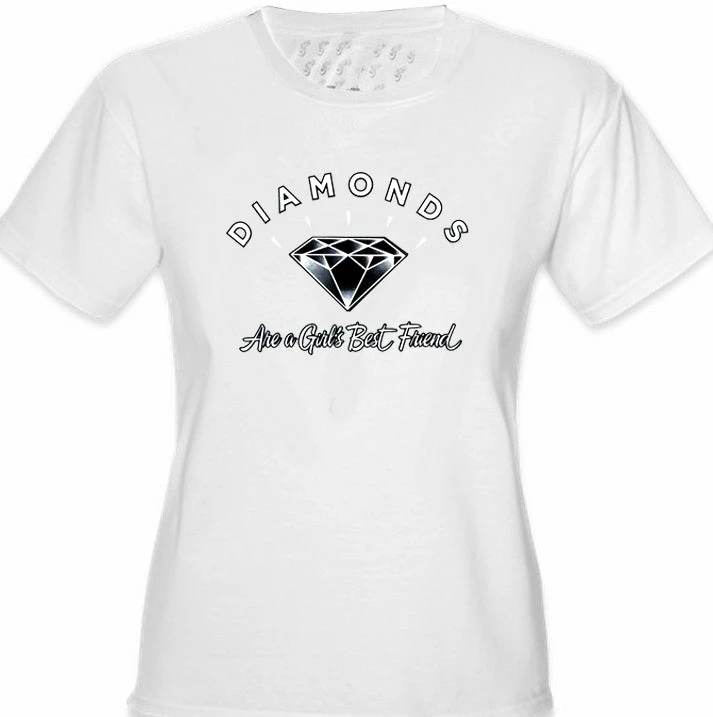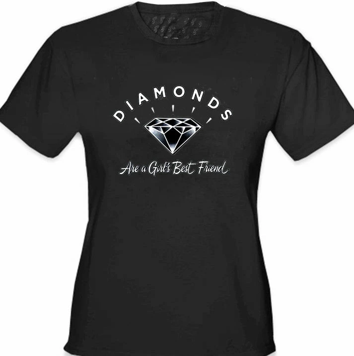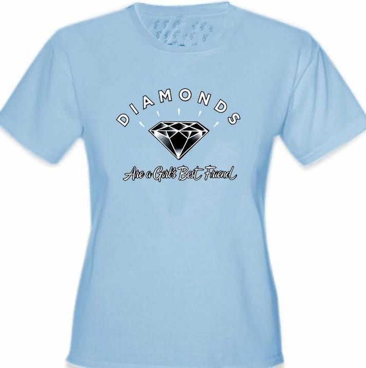 Junior Fitted Diamonds Are A Girl’s Best Friend Girl’s shirts are a S-32″ at bust and 29″ at waist, M-34″ at bust and 30″ at waist , L36″ at bust and 34″ at waist, XL-38″ at bust and 35″ at waist.