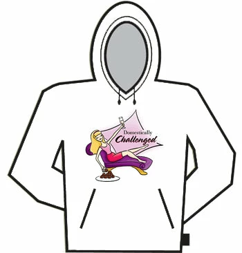 Domestically Challenged, You will be able to picture yourself walking anywhere in this White Hooded 50/50 Sweatshirt. Designed for warmth and durability the 7.5 ounce, 50/50 blend fleece fabric with double-ply hood provides protection from a blinding snow storm at the North Pole or from blowing sand in the Mojave Desert. This hooded sweat is versitility plus. The convenient pouch pocket keeps hands warm or holds a water bottle. The matching drawstring and metal grommets on the hood make sure it stays where it belongs. The set-in sleeves, ribbed cuffs and banded bottom all keep this shirt together in a way that makes durability its middle name.