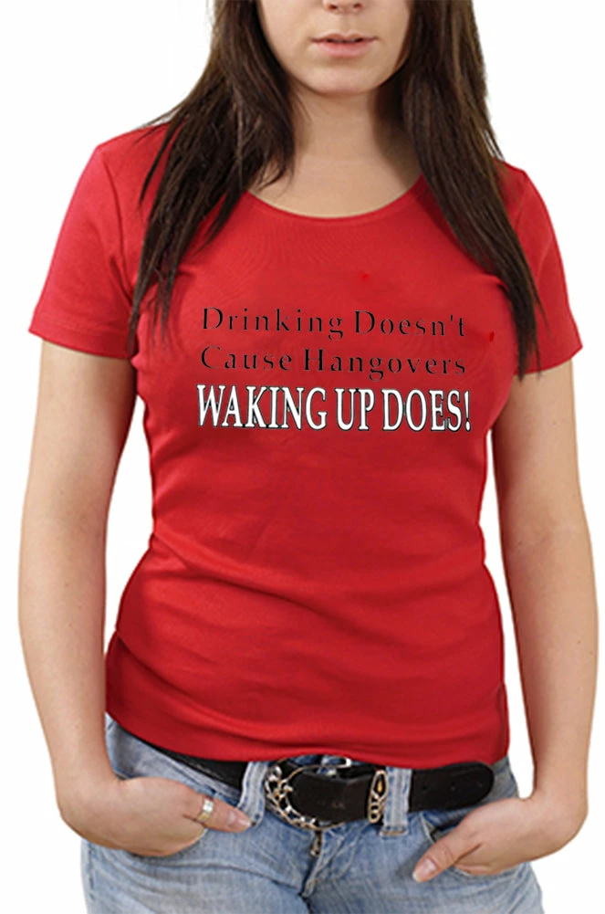Drinking Doesn’t Cause Girls T-Shirt. Exclusively from Bewild.com, these new tee’s feature hard-core sayings that say it all. From “Lick Here For Full View” to “Skanky white-trailer trash”. How about a t-shirt that says “Dip me in Chocolate and throw me to the lesbians?” Our short sleeve “Drinking Doesn’t Cause Hangovers Waking Up Does” t-shirts are made from a 100% fully machine washable cotton/poly blend for a cool and comfortable fit every time.