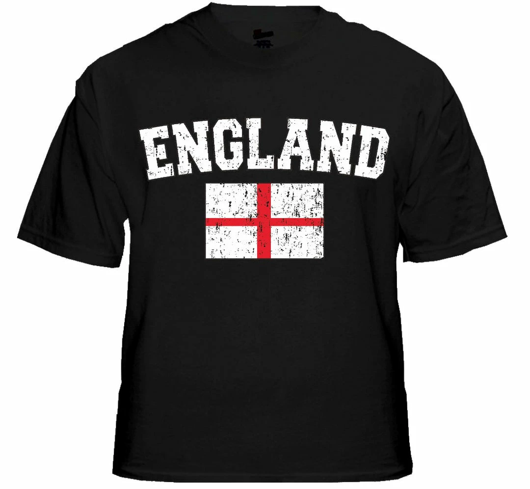 England Vintage Flag International Mens T-Shirt. Show pride for your favorite Nation! Our collection of deluxe vintage international print t-shirts are the perfect way to support your home country. Each shirt features premium vintage style designs made to look distressed for that soft “Favorite Old T-shirt” look from day one. These shirts are perfect whether you are rooting for your favorite soccer nation or just showing your love for a special country. Bold athletic style writing spells out each country’s name curved above the country’s national shield; a classic design that is sure to display your patriotism! Each shirt is printed to order on a deluxe Cotton tee shirt in your choice of color.