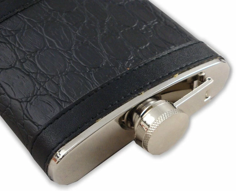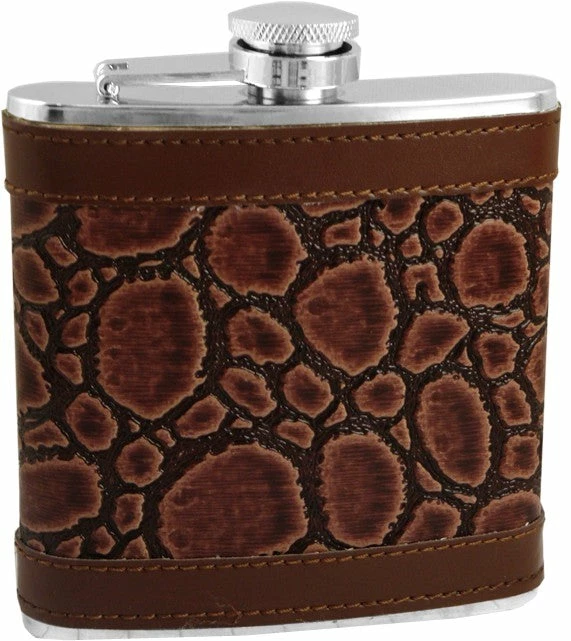 Do you love the look of exotic leathers but don’t have the heart or budget to own it? These exotic leather wrapped flasks feature the most realistic faux imitation exotic texture leather available to date. Each flask is individually finished for superior construction and fit and finish. 100% quality stainless steel flask body is water tight, will not corrode, features a curved design to fit comfortably against your leg while in your pocket and has an attached screw on cap. These Exotic Leathers 6 oz. Hip Flask ship individually in assorted exotic leather patterns in your choice of color.