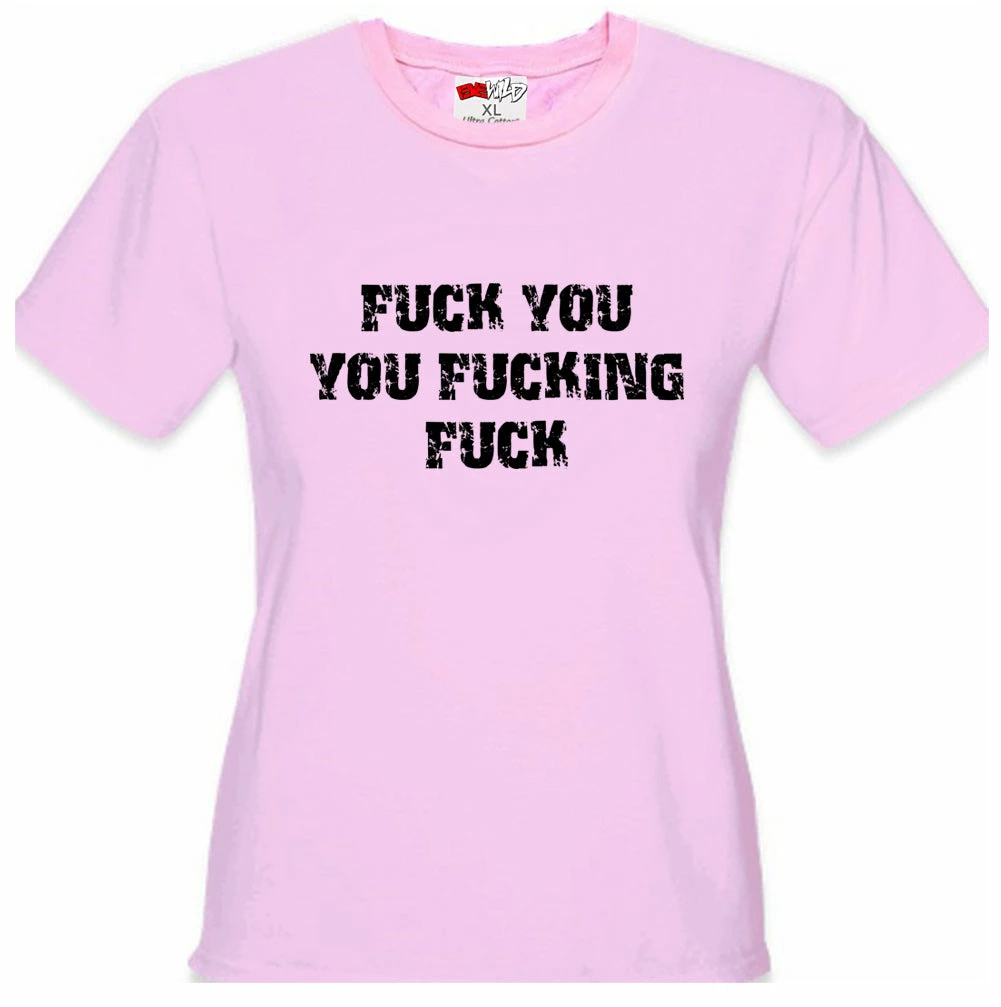 F*ck You You F*cking F*ck Junior Fitted shirts are a S-32″ at bust and 29″ at waist, M-34″ at bust and 30″ at waist , L36″ at bust and 34″ at waist, XL-38″ at bust and 35″ at waist.