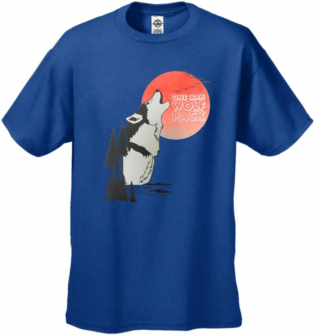 One Man Wolf Pack Men’s T-Shirt features a classic 100% Cotton style is a great choice for anyone’s T-shirt drawer. These One Man Wolf Pack Men’s T-Shirts have been printed with image on the front. These t shirts are made from heavyweight 6oz. 100% Preshrunk cotton. Looks Great, Priced right – and gets better with each washing.