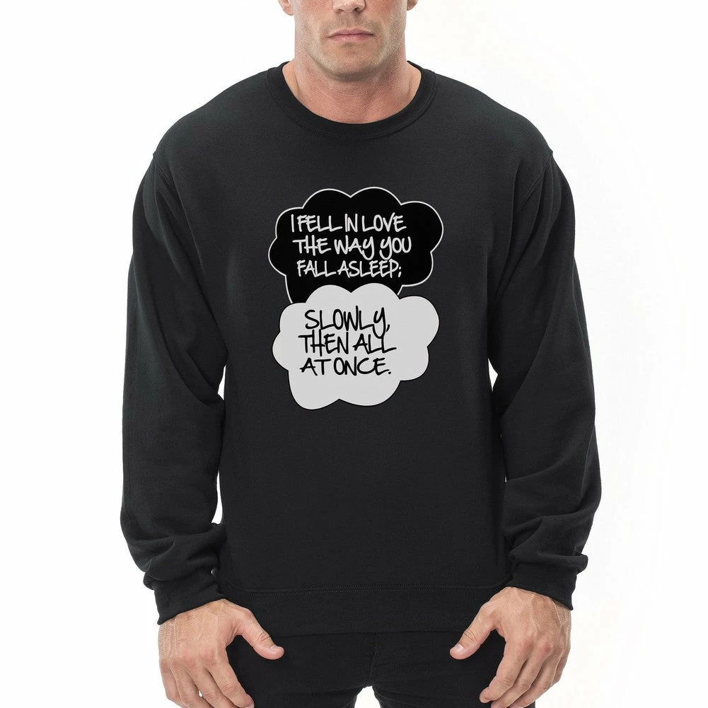 “I Fell In Love” John Green Quote from The Fault in Our Stars Crew Neck Sweatshirt. Our deluxe crew neck sweatshirts are perfect for keeping warm in the cold weather. Each sweatshirt is stylish and super comfortable! Crew neck sweatshirts are great for wearing under a jacket or zip up hoodie to keep warm when it’s cold and since the garment is made of breathable cotton-poly fabric these sweatshirts keep you from over heating when things get hot! Each crew neck sweatshirt is perfect for men and women.These sweatshirts are great for work, athletic training and daily wear.